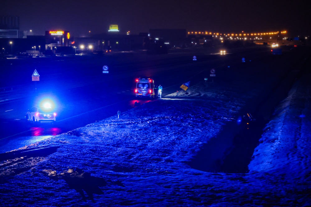 Geplaatst op 12 januari 2026, om 09:05 uurHEERENVEEN – Maandagochtend is rond 04.20 uur een personenauto van de A7 bij Heerenveen geraakt en ondersteboven in een sloot beland. De gladheid op de weg speelde vermoedelijk een rol bij het ongeval.
