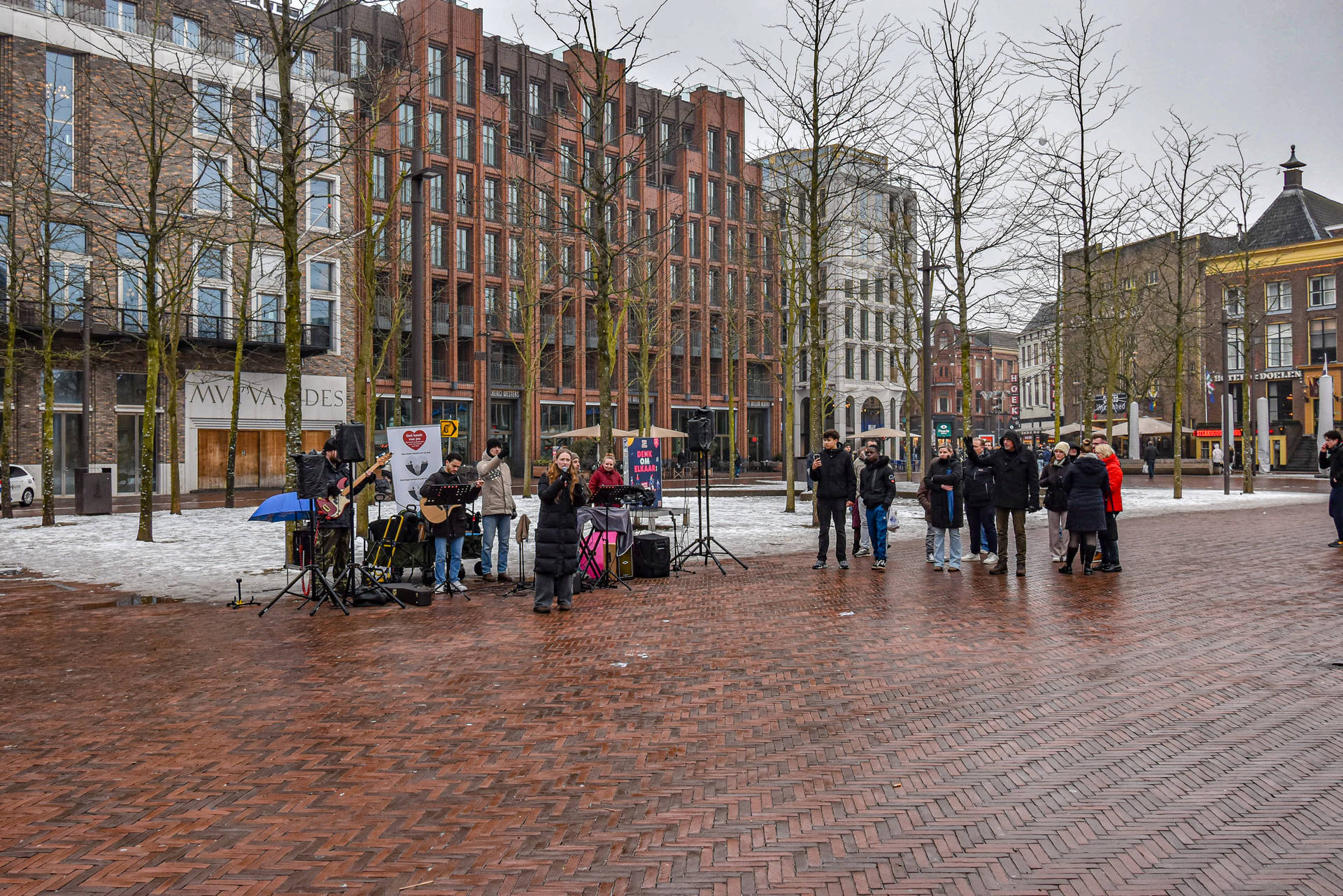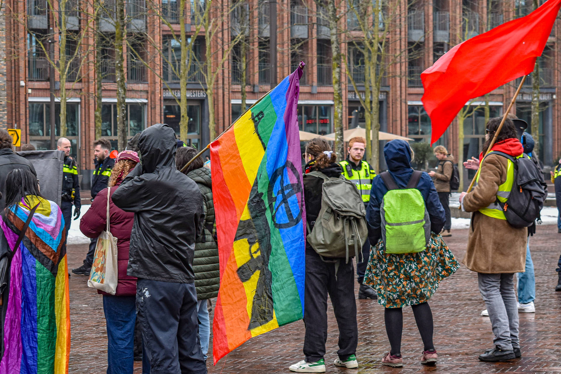 De demonstranten maakten gebruik van spandoeken en leuzen om hun boodschap over te brengen. Dit trok de aandacht van voorbijgangers en leidde tot een opvallende aanwezigheid op het plein.