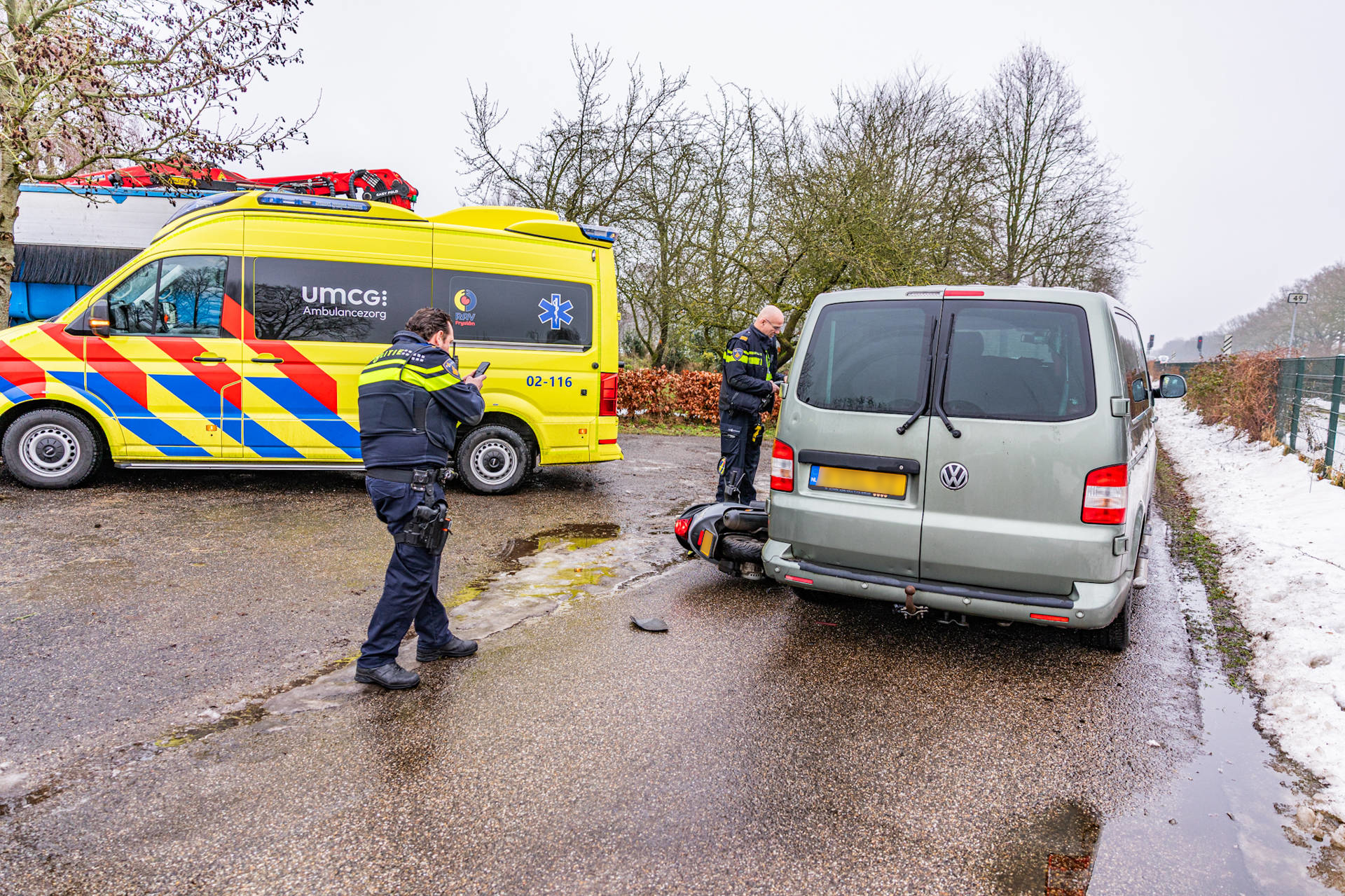 Geplaatst op 13 januari 2026, om 11:49 uurBUITENPOST – Op de Egypte bij Buitenpost is dinsdagochtend een scooterrijder gewond geraakt bij een aanrijding met een stilstaand busje. De bestuurder van het busje stond stil omdat een vrachtwagen achteruit een erf op reed.