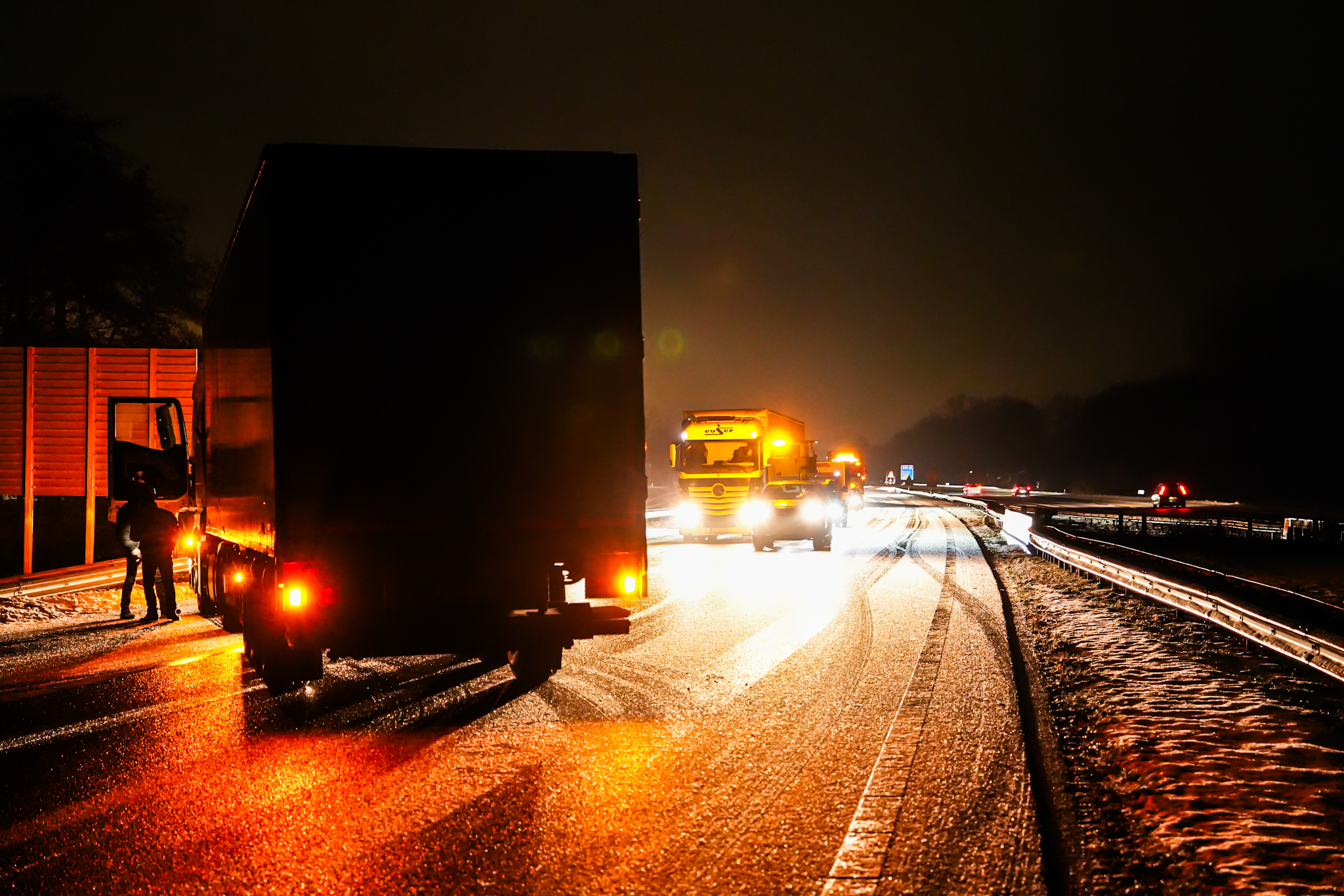Niemand raakte gewond. De vrachtwagen kon niet zelfstandig verder en moet worden geborgen. Strooiwagens zijn ingezet om de weg weer begaanbaar te maken. De afsluiting zal vermoedelijk nog enkele uren duren.