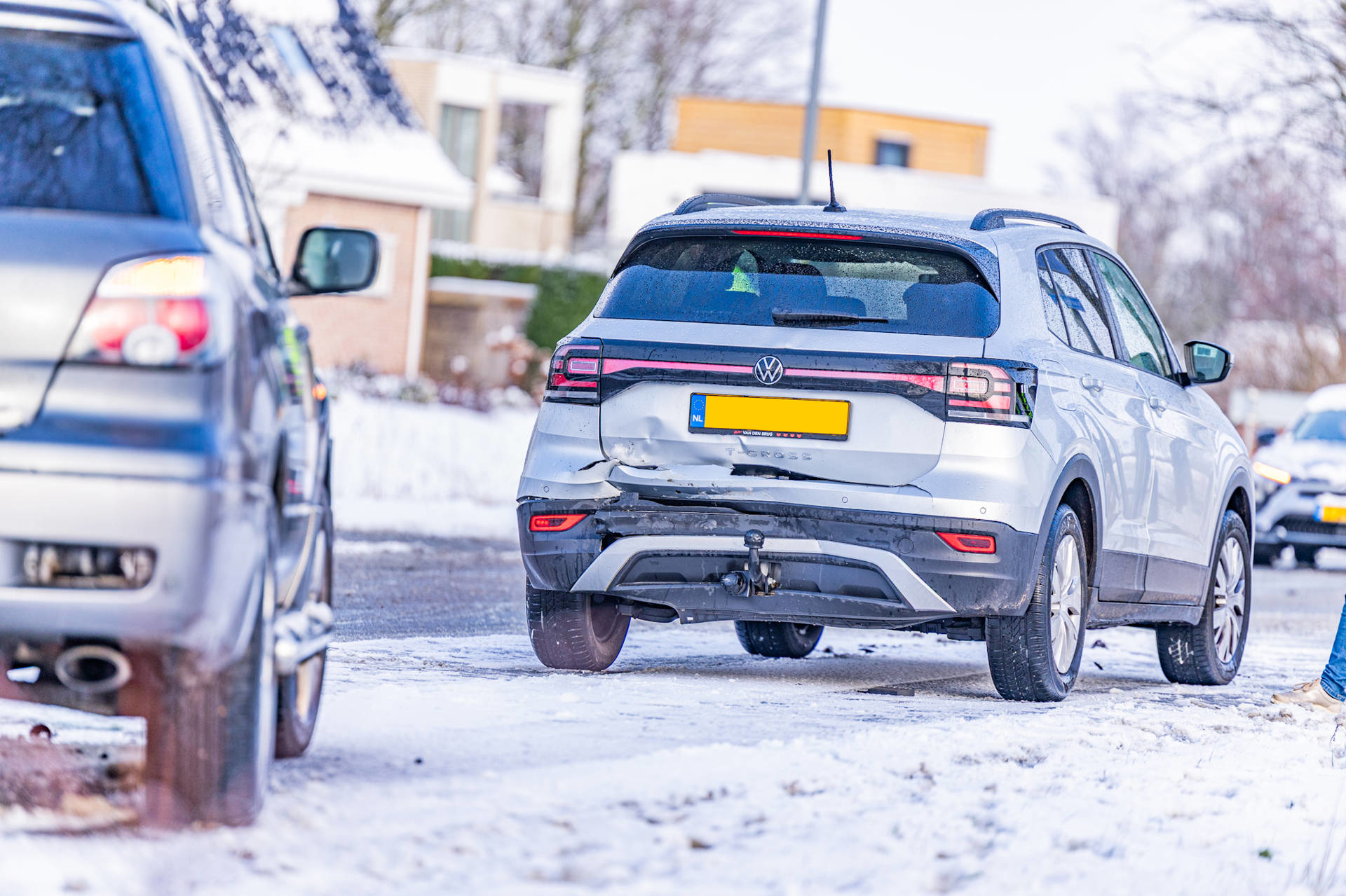 Twee voertuigen botsen door gladheid