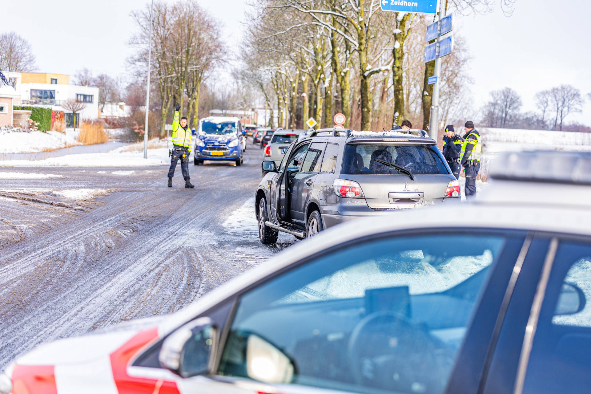 Geplaatst op 3 januari 2026, om 15:15 uurZUIDHORN – Op de Fanerweg (N380) bij Zuidhorn zijn zaterdagmiddag twee voertuigen met elkaar in botsing gekomen als gevolg van gladheid op de weg.