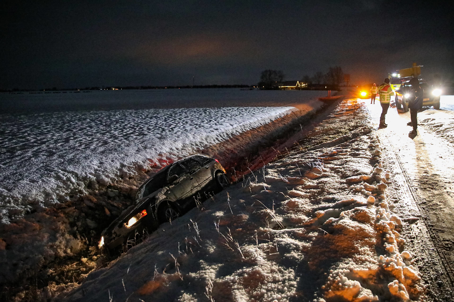 Geplaatst op 5 januari 2026, om 06:15 uurPIETERZIJL – Zondagavond laat is een auto in Pieterzijl van de weg geraakt en in een sloot beland door gladheid.