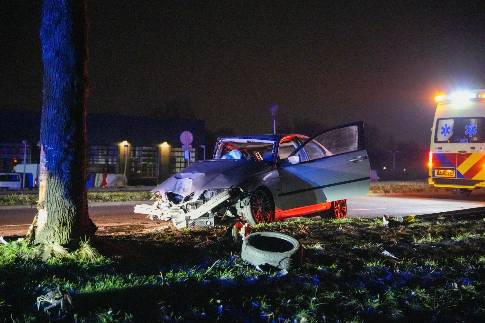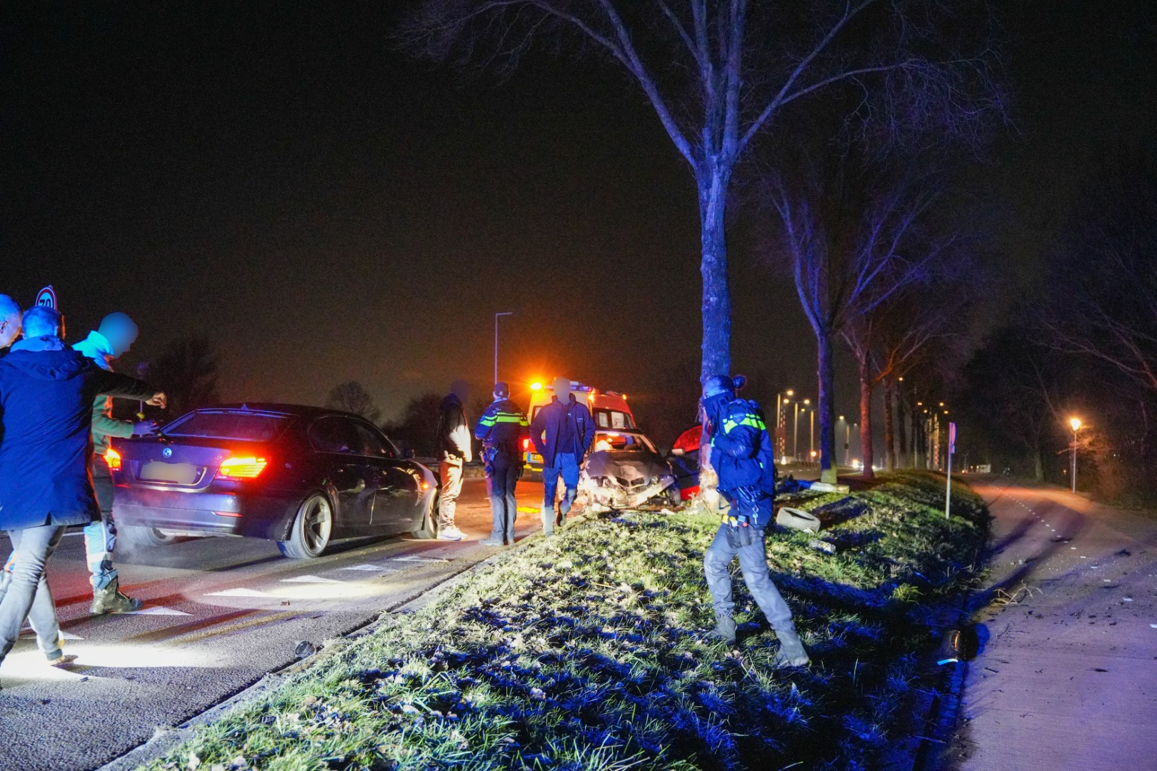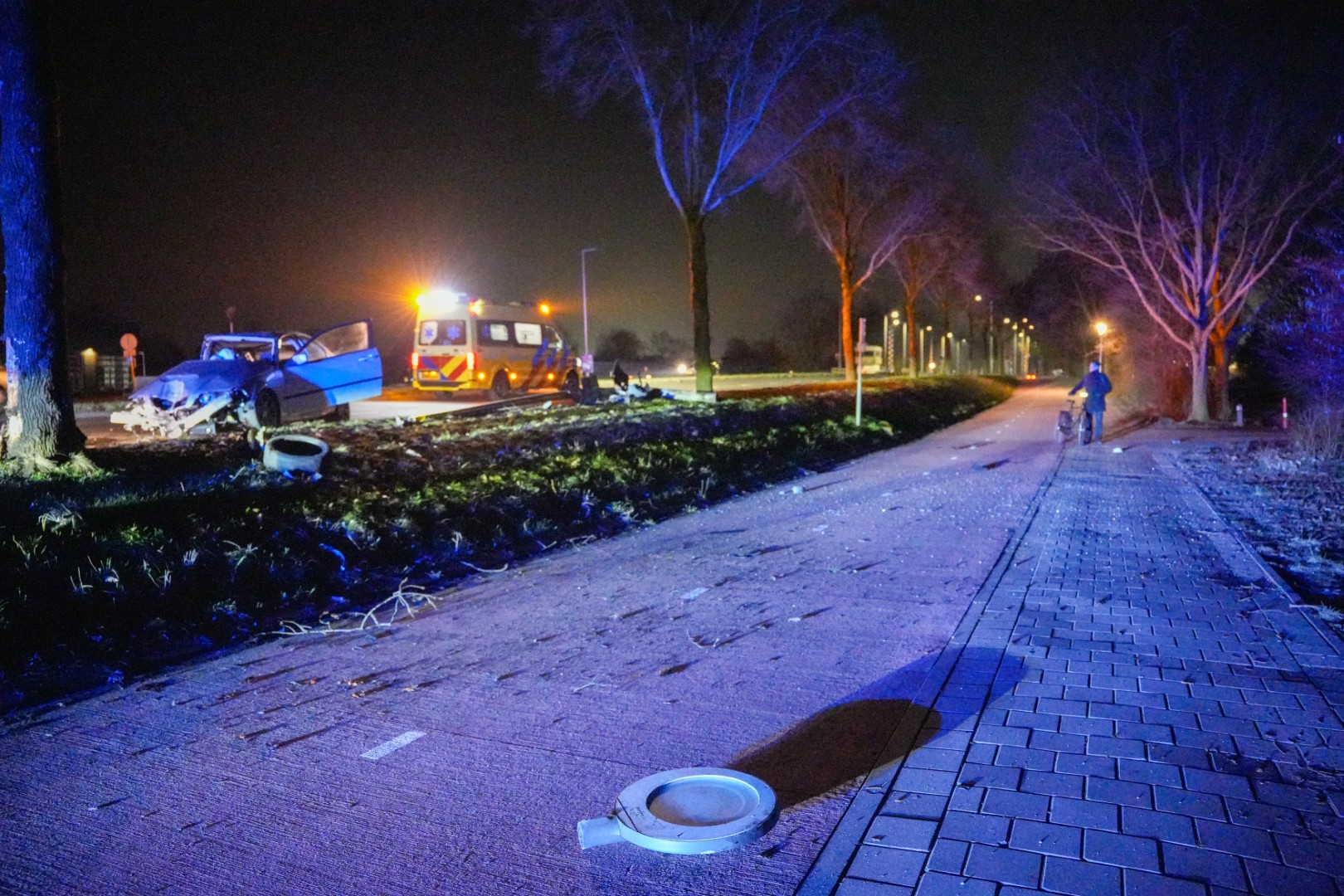 De auto raakte zwaar beschadigd en de weg lag bezaaid met brokstukken. Ook een lantaarnpaal moest het ontgelden; de lampenkap belandde op het fietspad naast de weg. De bestuurder kon zelf uit het voertuig komen, maar is met een ambulance naar het ziekenhuis gebracht.