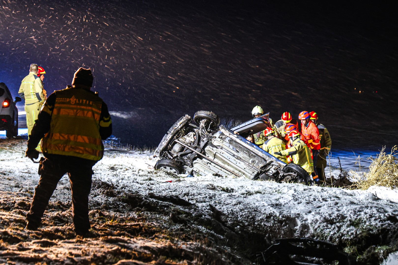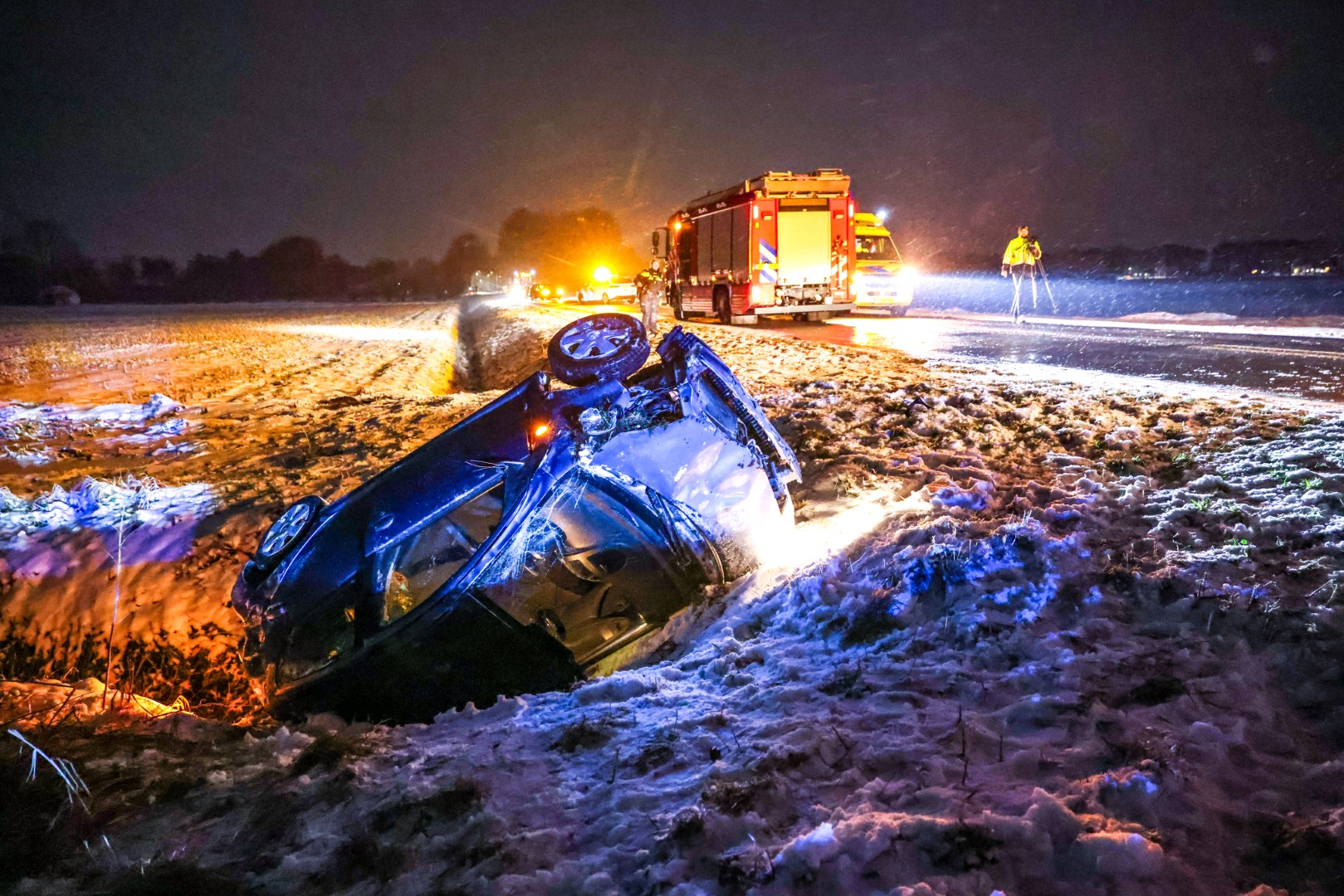 Geplaatst op 29 januari 2026, om 20:22 uurNIEUW-WEERDINGE – Op de Oude Weerdingerdijk is donderdagavond rond 18:50 uur een auto door gladheid van de weg geraakt en op de kop in een sloot terechtgekomen. Het ongeval werd veroorzaakt door gladheid als gevolg van nieuwe sneeuwval.