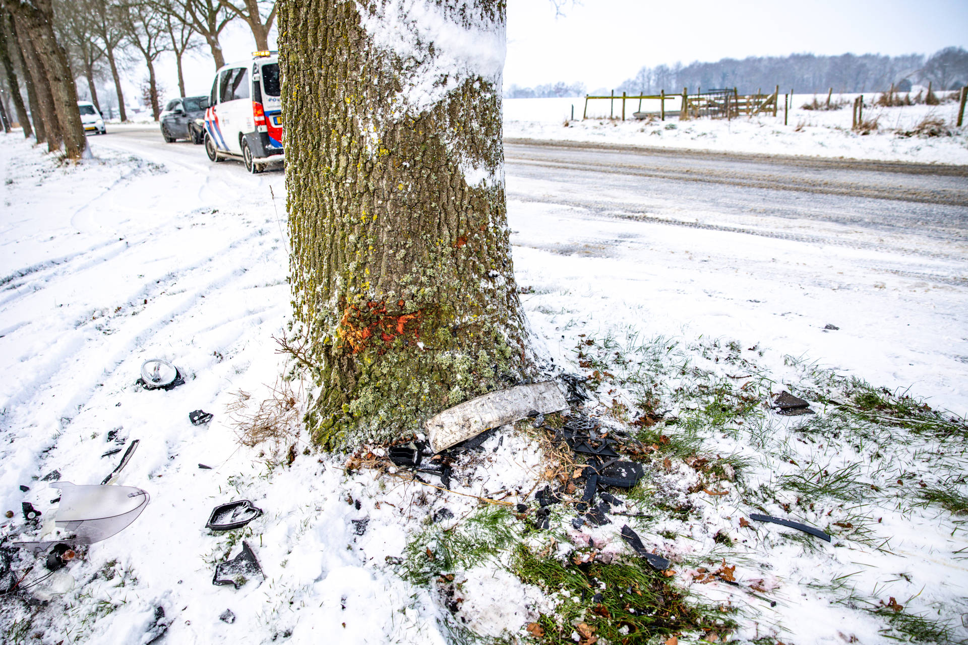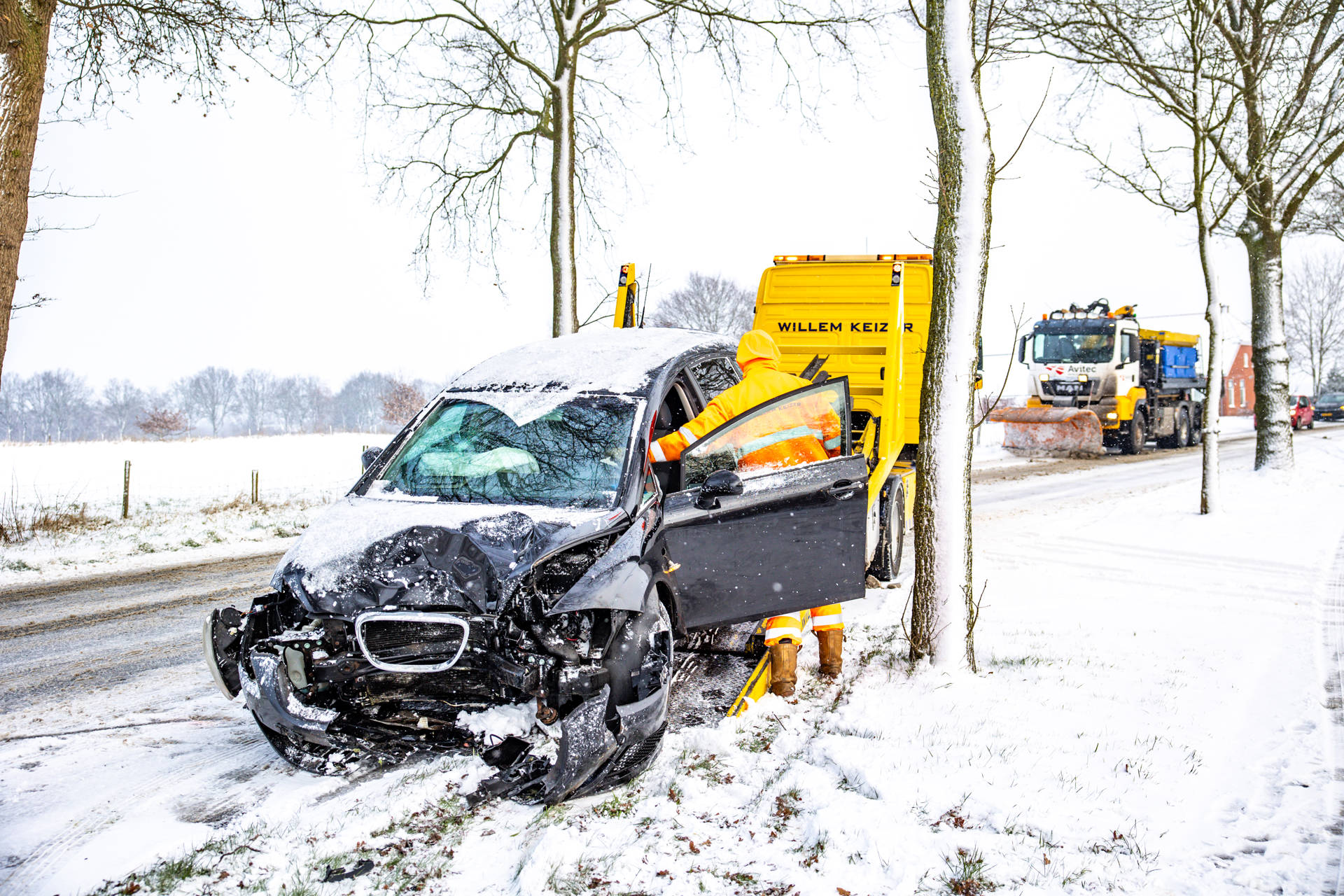 De auto raakte bij het ongeval beschadigd. De gladheid wordt als oorzaak van het incident gezien.