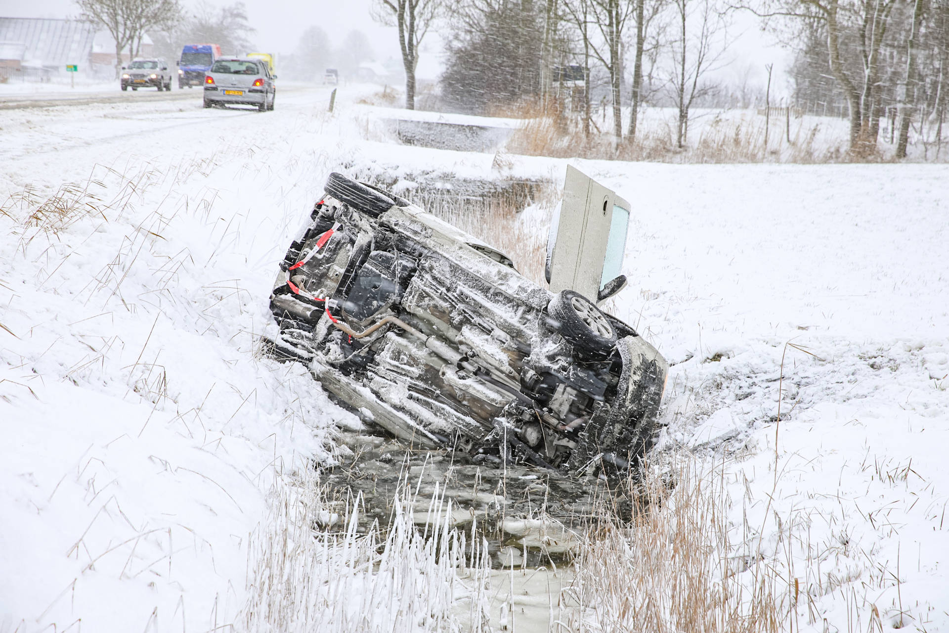 Geplaatst op 7 januari 2026, om 18:00 uurNOORDHORN – Woensdagmiddag rond 13.19 uur is op de Rijksstraatweg (N355) bij Noordhorn een auto door gladheid van de weg geraakt en op zijn zijkant in een sloot beland, ter hoogte van hectometerpaal 40,2.