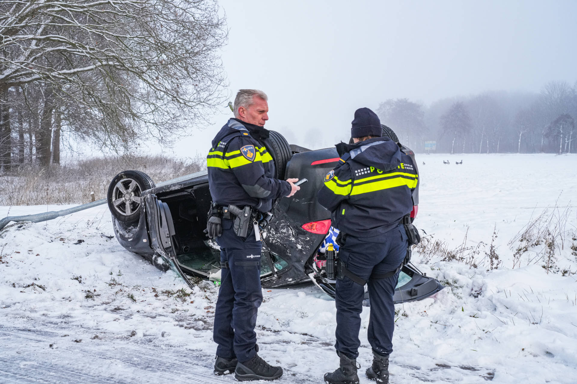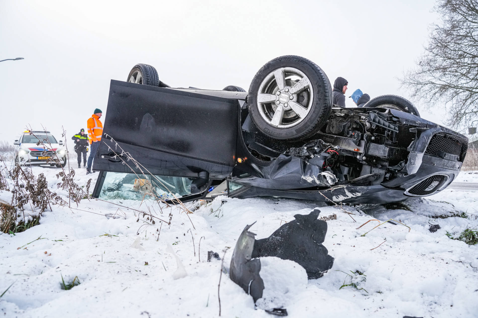 Auto slaat over de kop door gladheid