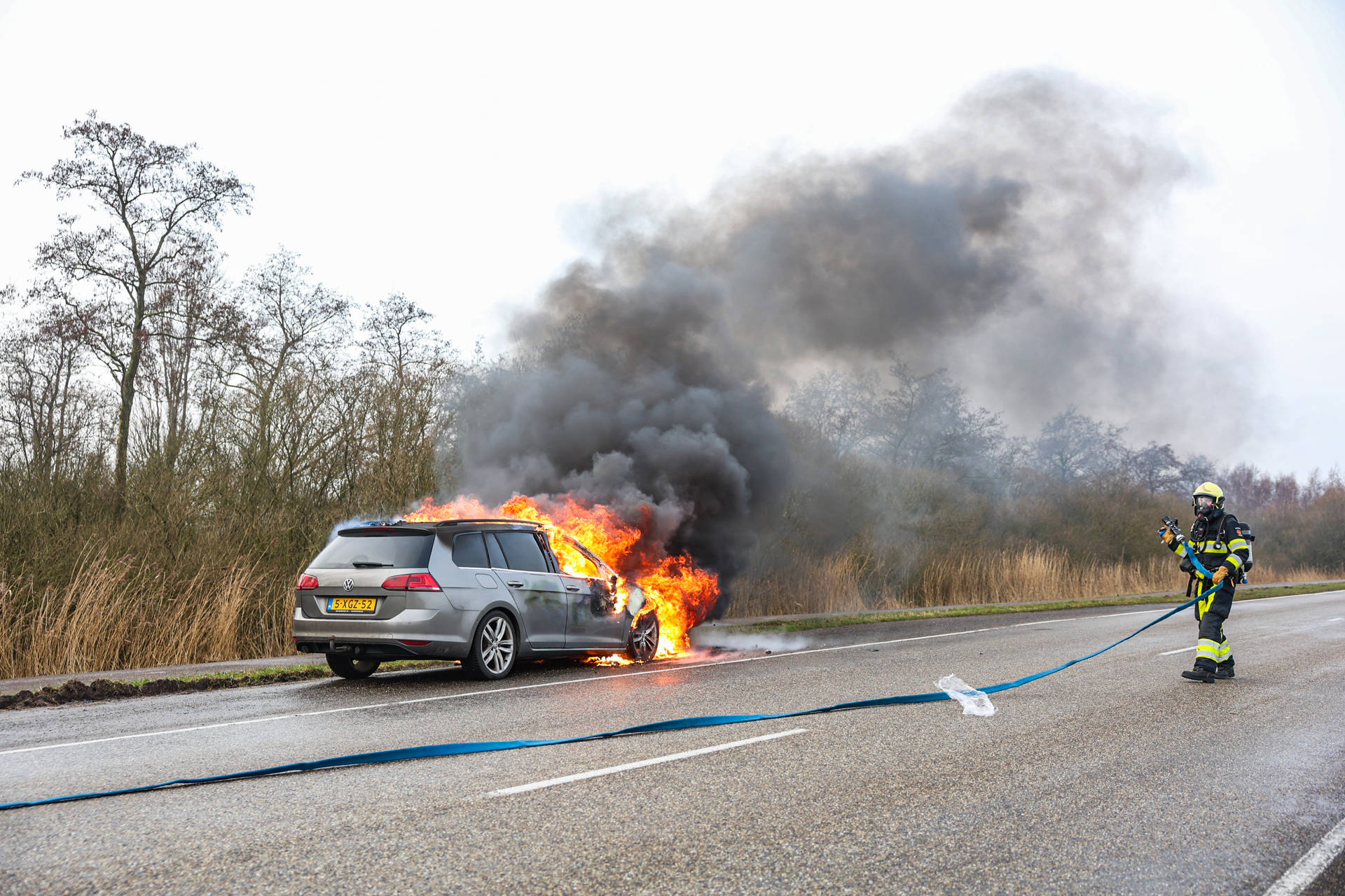 De brandweer wist het vuur te blussen, maar kon niet voorkomen dat de auto volledig uitbrandde. De oorzaak van de brand is nog niet bekend.