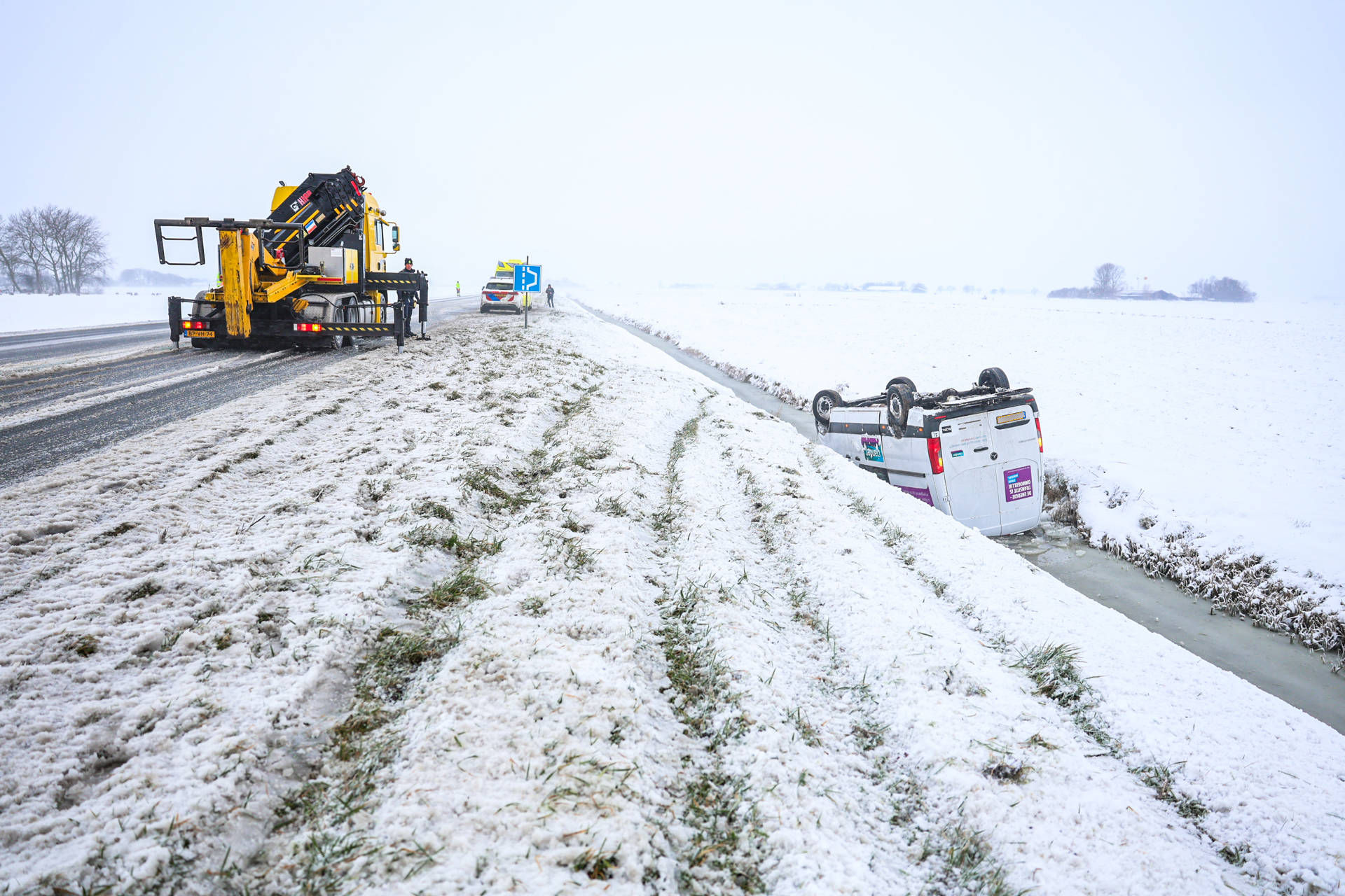Geplaatst op 7 januari 2026, om 16:20 uurWOMMELS – Een bestelbus is woensdagochtend op de kop in een sloot terecht gekomen aan de N359 bij Wommels. De hulpdiensten waaronder de politie, brandweer en ambulance kwamen met spoed ter plaatse.