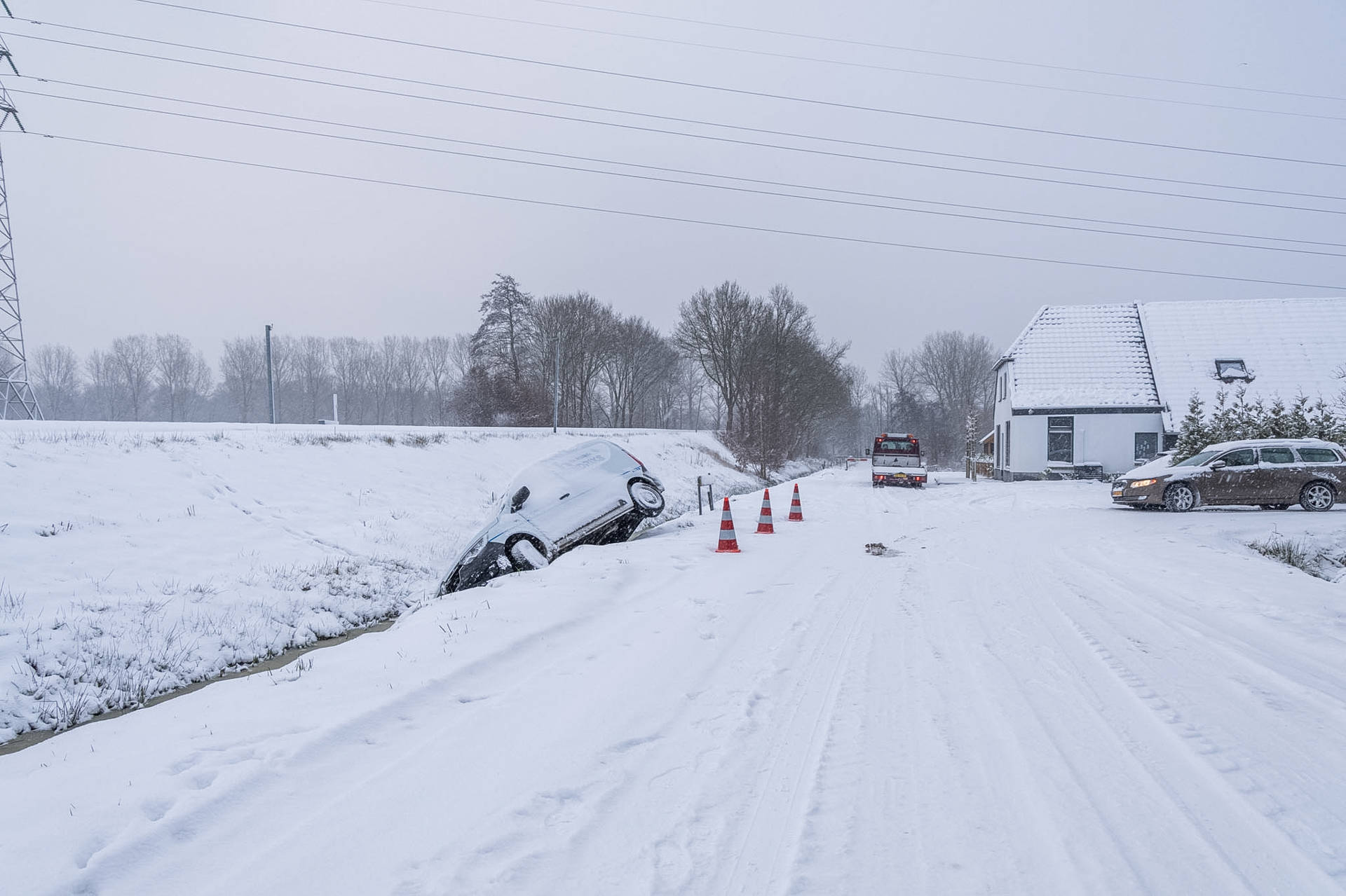 De bestuurder verloor de controle over het voertuig door de winterse omstandigheden en raakte van de weg. Het busje kwam tot stilstand in een sloot naast de rijbaan.