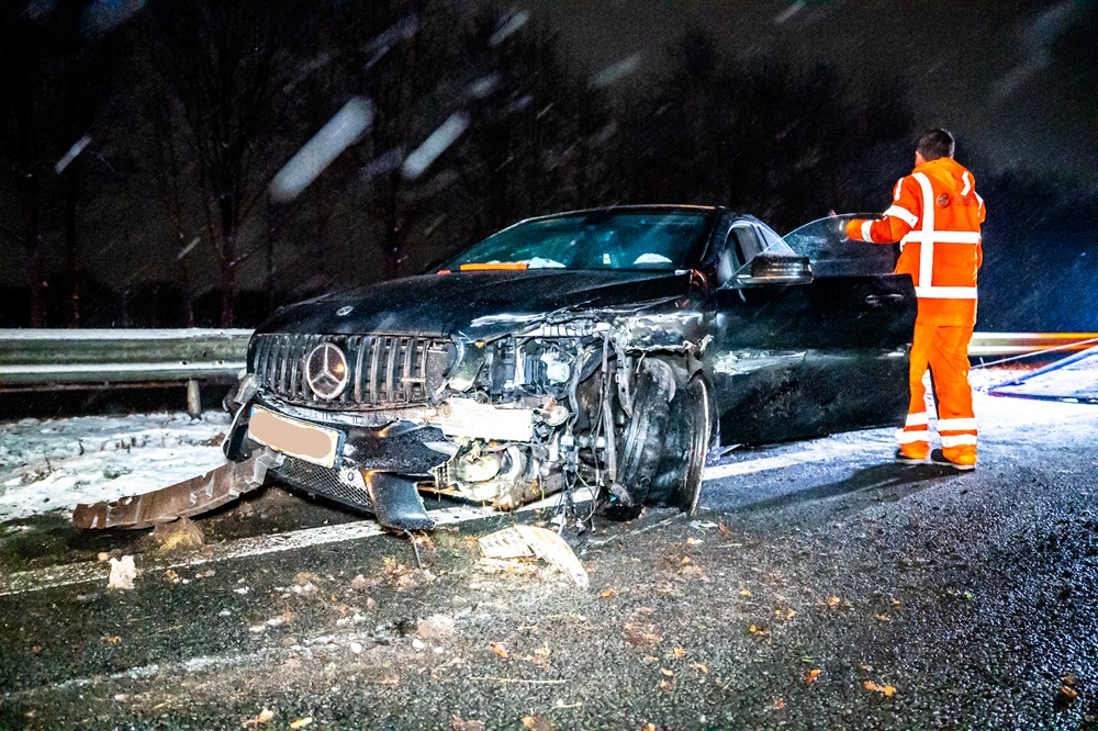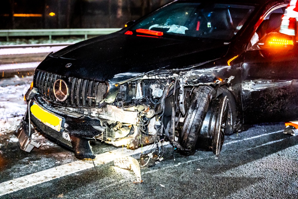 Dronken automobilist botst op snelweg tegen vangrail