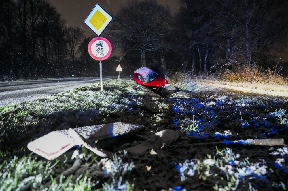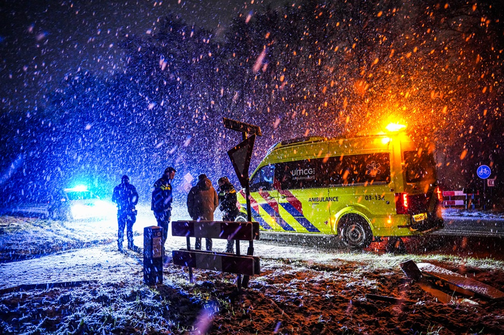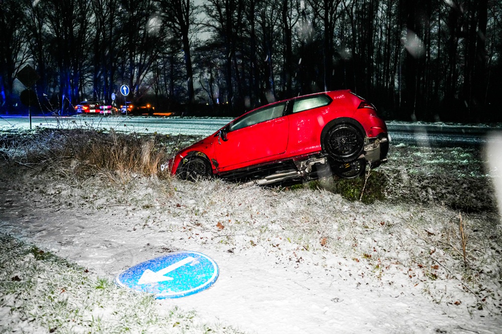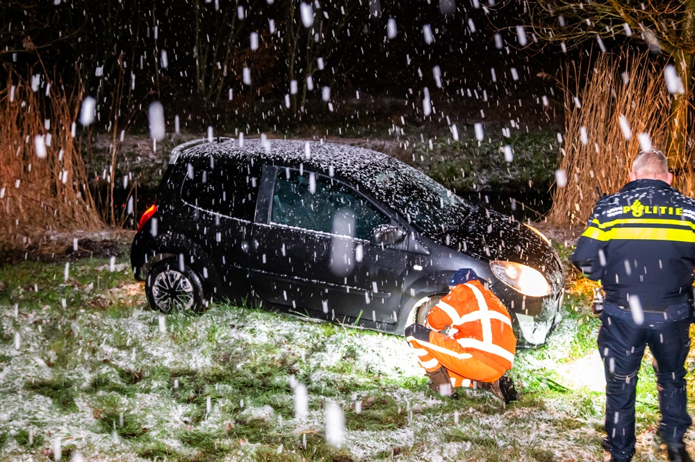 In Emmen verloor een automobilist op de Dordsestraat (N862) ter hoogte van de Bargerweg rond 03.05 uur de controle over het voertuig in een flauwe bocht. Door de sneeuwval gleed de auto van de weg en belandde omgekeerd in een greppel. Daarbij werden meerdere verkeersborden geraakt. Twee inzittenden zijn ter plaatse gecontroleerd door ambulancepersoneel, maar hoefden niet mee naar het ziekenhuis. Een deel van de weg werd tijdelijk afgesloten.