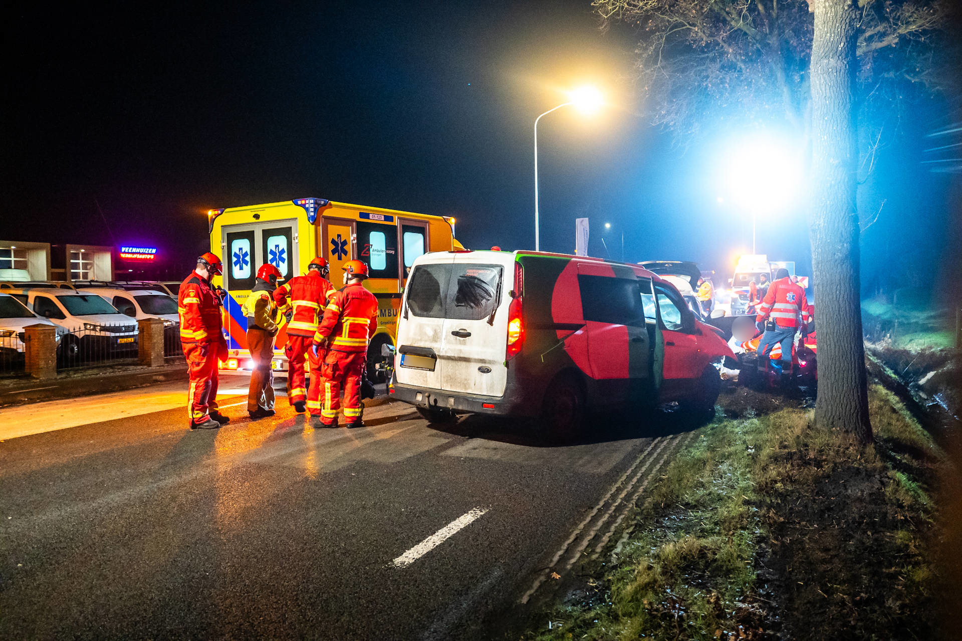 Politie, brandweer, ambulances en een traumahelikopter kwamen ter plaatse. Beide betrokken personen zijn met spoed overgebracht naar het UMCG. De arts van de traumahelikopter is meegereden in één van de ambulances. De bestuurder van de bestelbus raakte bij het ongeval ernstig gewond.