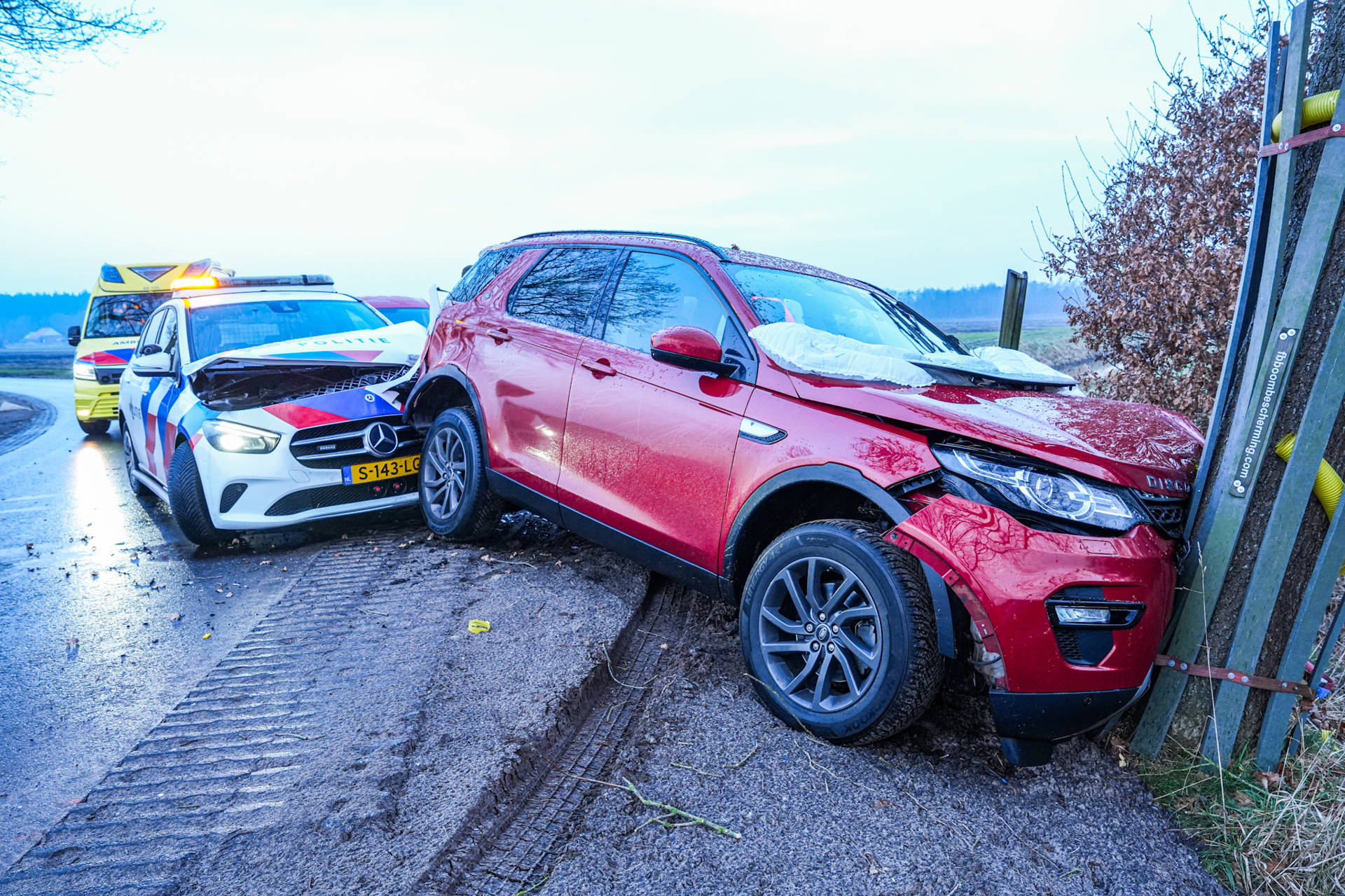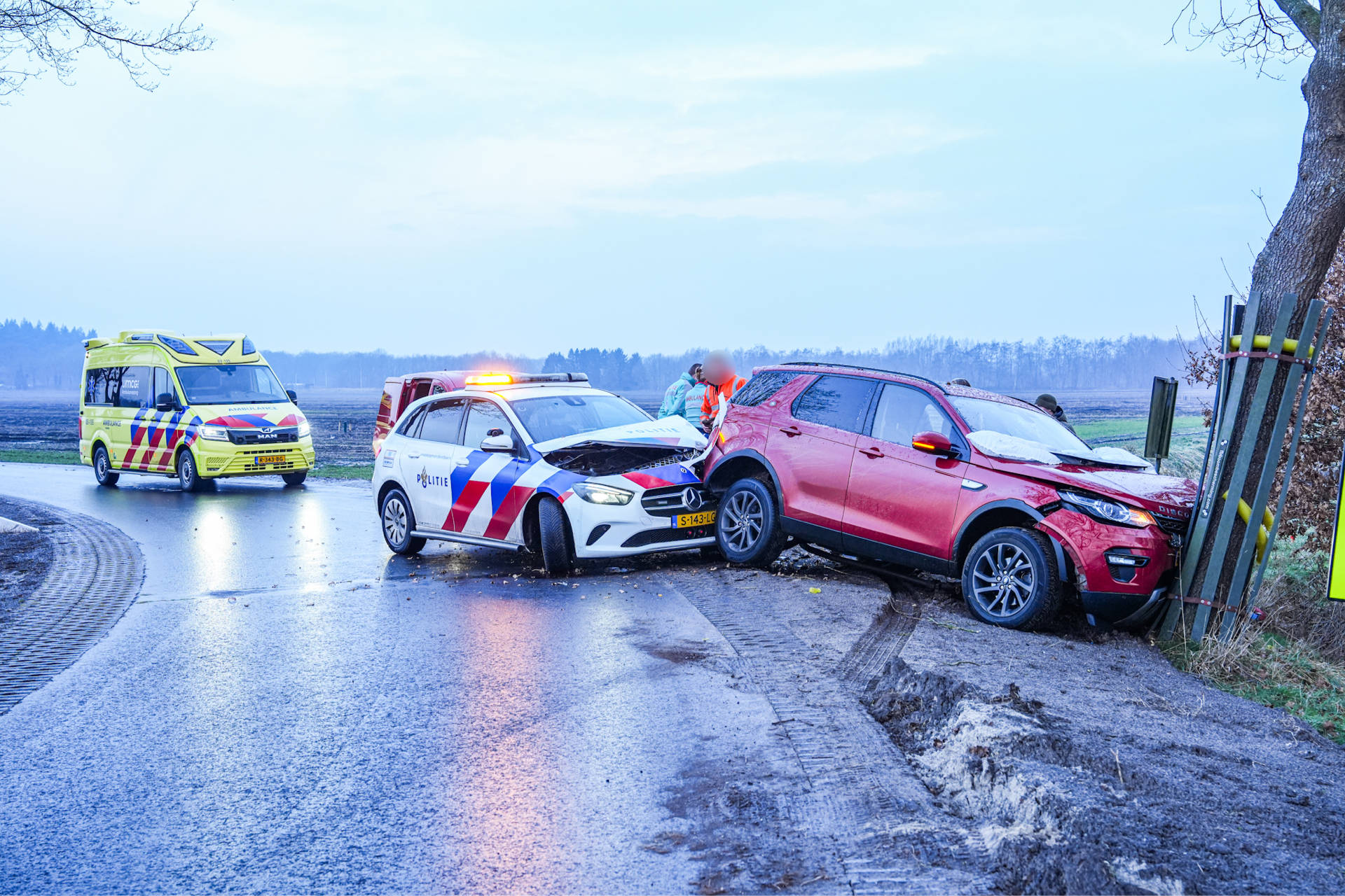 De weg was spiegelglad en niet gestrooid, een echte ijsbaan. Een toegesnelde politieauto kon ondanks de lage snelheid niet voorkomen dat deze achterop de personenauto die reeds tegen de boom stond achterop botste.