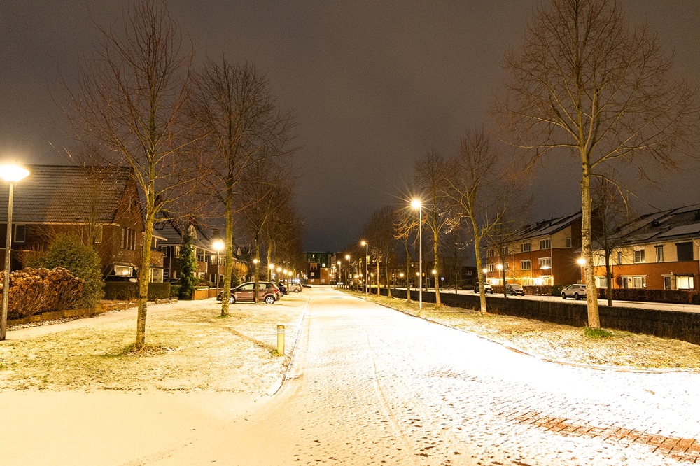 Ook in Eelderwolde ligt sinds de nacht gemiddeld zo’n drie centimeter sneeuw. Het dorp heeft door de witte dekens een uitgesproken winters aanzicht gekregen. In heel de regio past het verkeer zich aan de omstandigheden aan: auto’s rijden trager en sneeuwruimers zijn sinds de vroege ochtend bezig met het schoonmaken van wegen en fietspaden. Het KNMI heeft code geel afgegeven voor Drenthe tot maandagochtend 05.00 uur vanwege aanhoudende gladheid. De winterse neerslag houdt volgens verwachting het hele weekend aan.