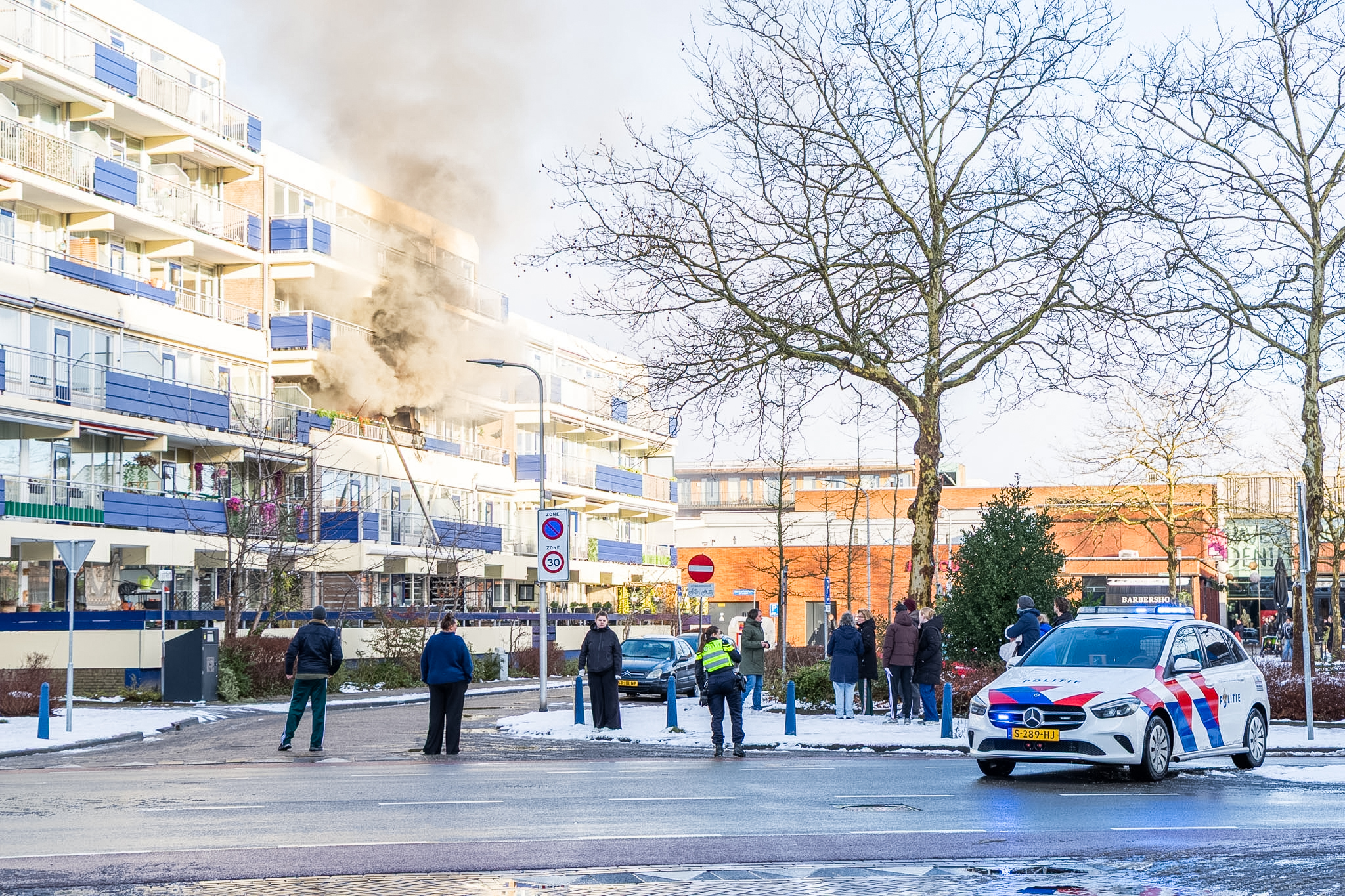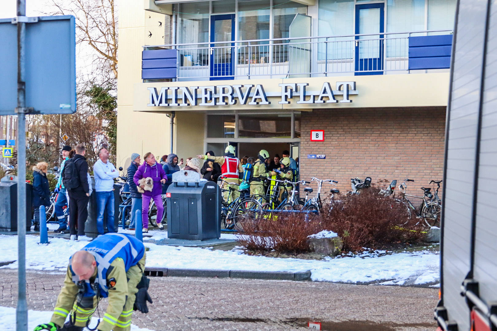 De brand ontstond in de middag, waarna het flatgebouw is ontruimd. Bewoners zijn opgevangen in theater De Nieuwe Kolk, waar zij tijdelijk kunnen verblijven.