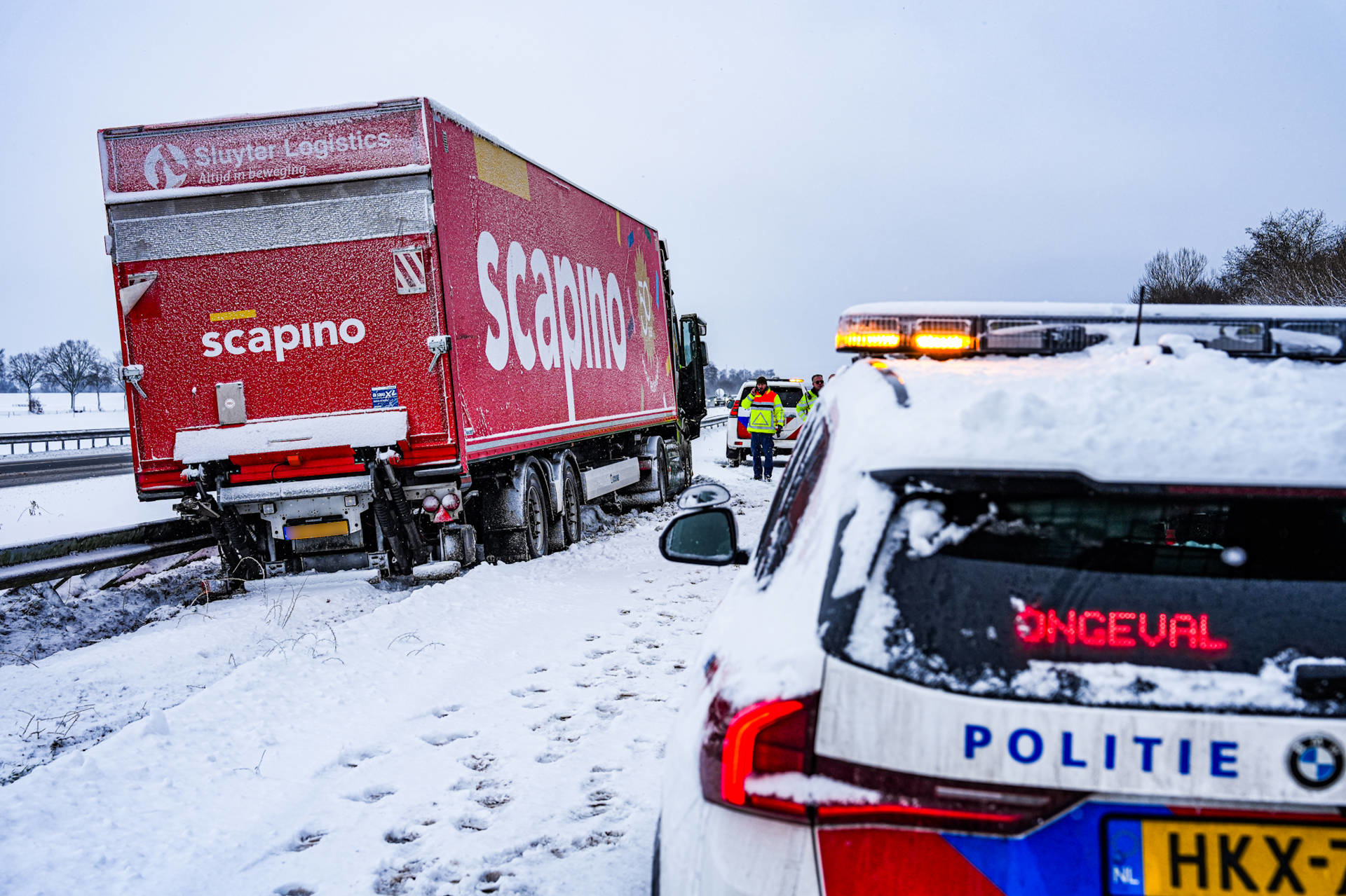 De chauffeur gaf aan passagier te zijn in zijn eigen voertuig en kon niet voorkomen dat de vrachtwagen hard tegen de vangrail botste. Bij het incident raakte niemand gewond.