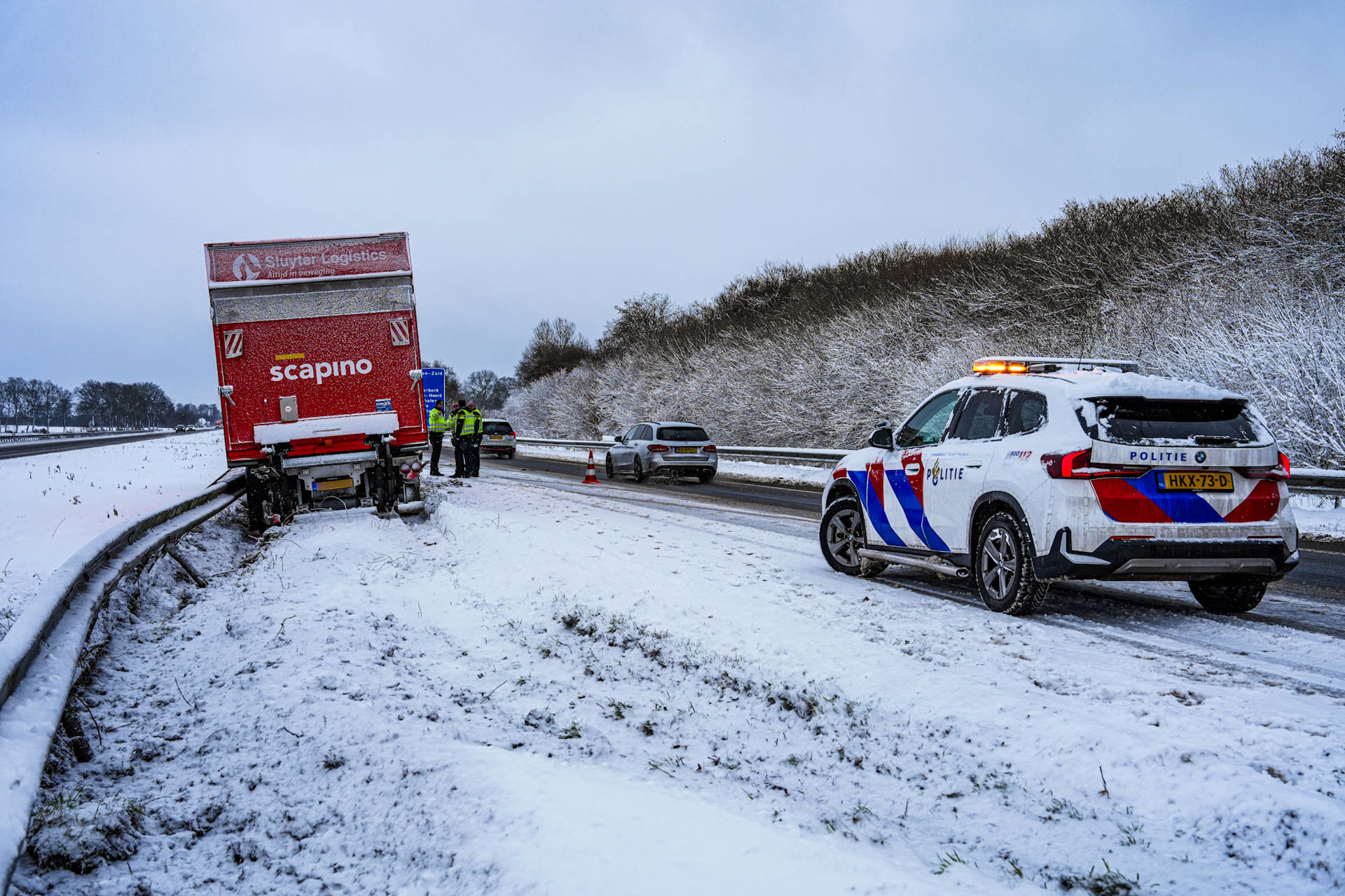 Geplaatst op 7 januari 2026, om 18:37 uurBEILEN – Woensdagmiddag is op de A28 tussen Hoogeveen en Assen, ter hoogte van Beilen, een vrachtwagen in de vangrail terechtgekomen.