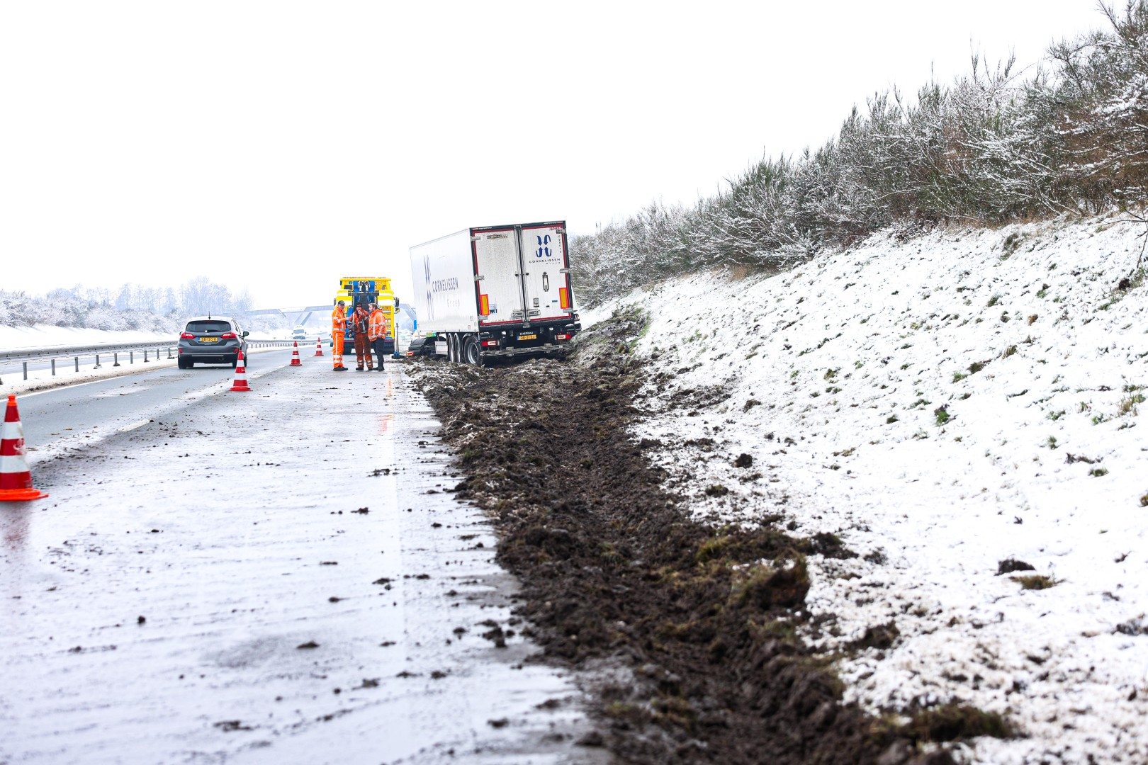 De Poolse chauffeur bleef ongedeerd. Het incident veroorzaakte enige hinder voor het verkeer.
