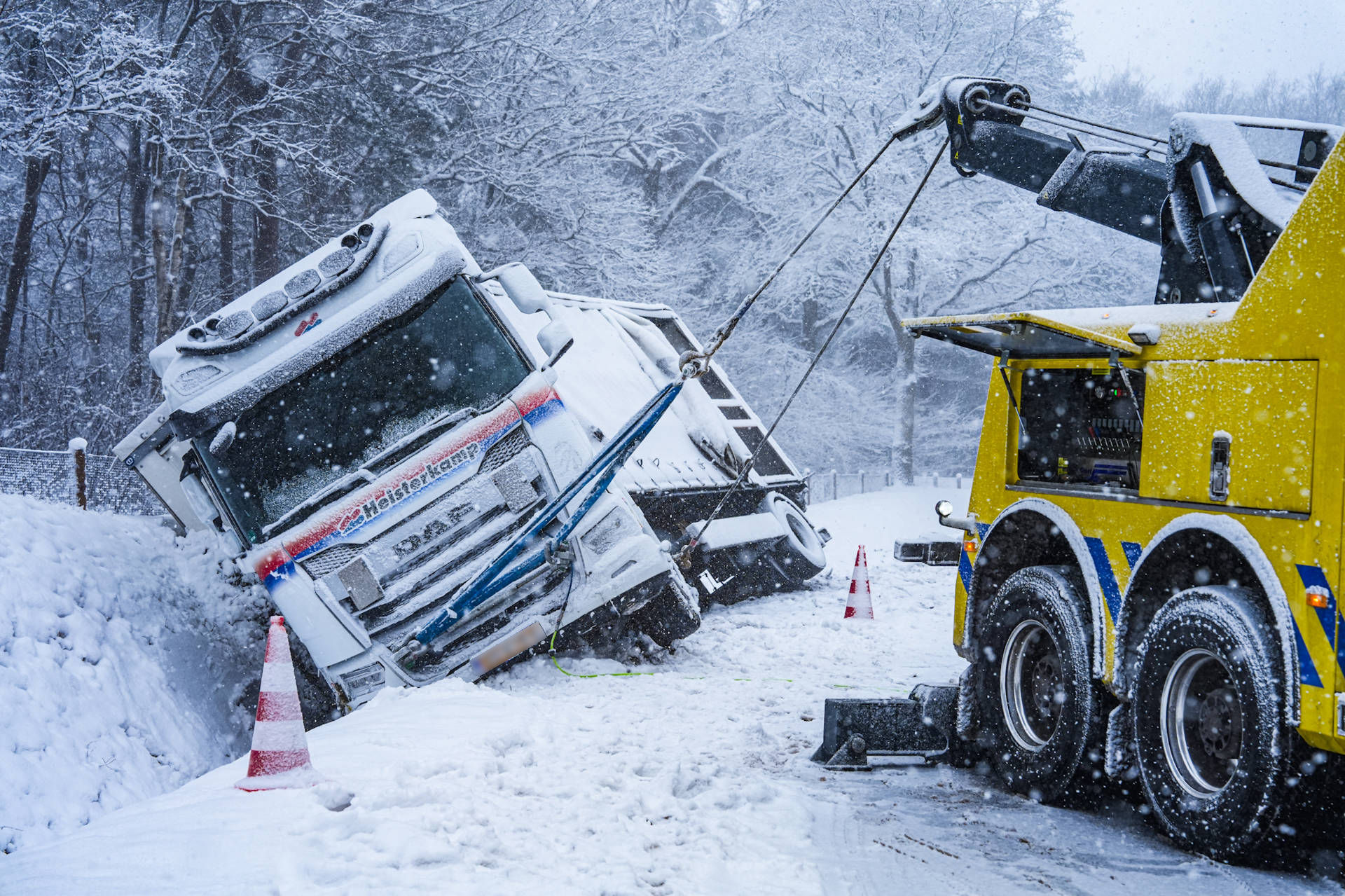 Geplaatst op 7 januari 2026, om 17:35 uurMATINGE – Woensdagmiddag is tijdens een hevige sneeuwstorm een vrachtwagencombinatie geschaard op de N374 tussen Westerbork en Hoogeveen, ter hoogte van Matinge. De combinatie raakte in een bocht van de weg en belandde in een naastgelegen sloot.