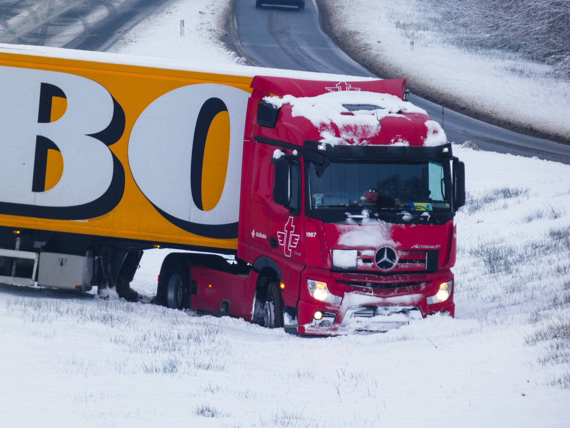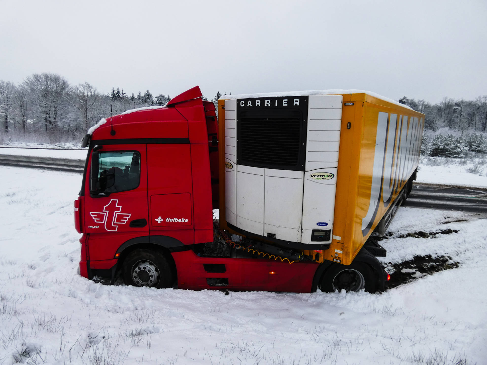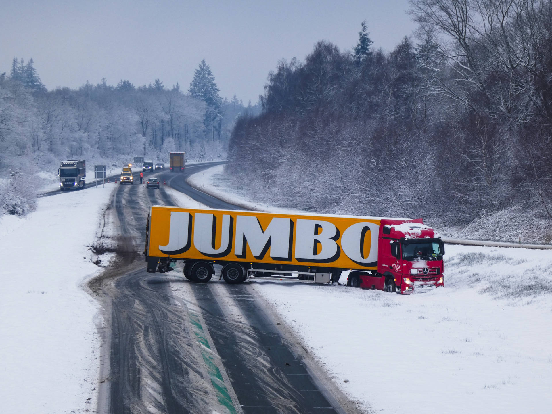 De chauffeur, die op de terugweg was van een levering bij de Jumbo aan de Van Loonstraat in Leeuwarden, raakte ter hoogte van Appelscha in een slip. Door de gladheid verloor hij de controle over het voertuig en kwam de combinatie in de berm terecht.