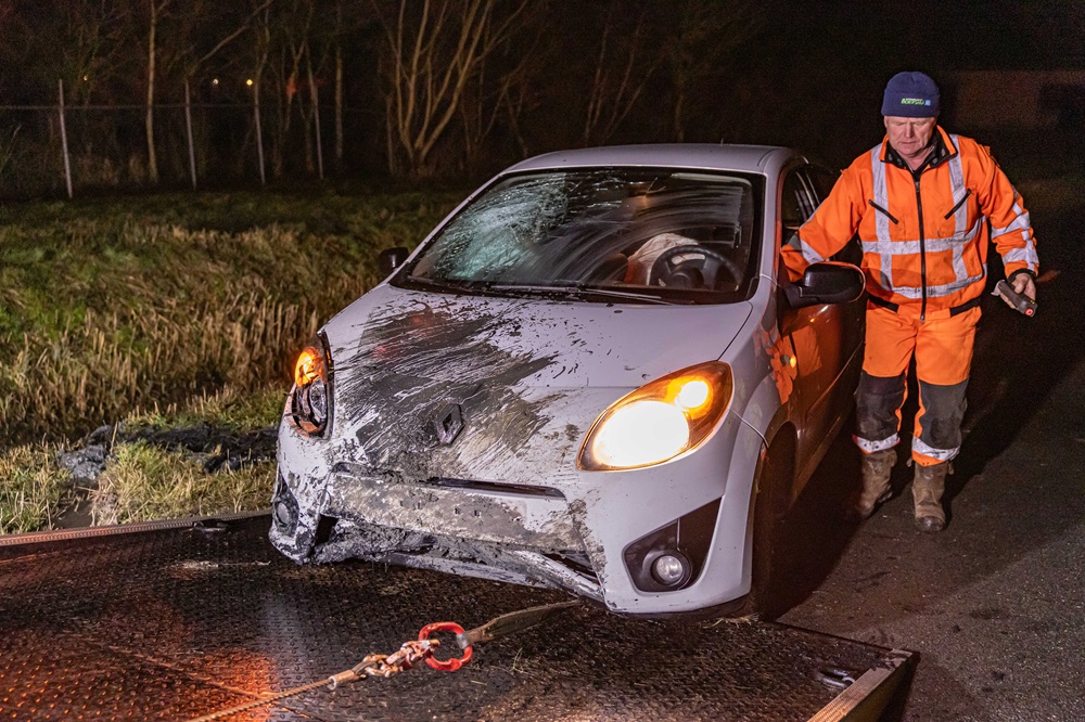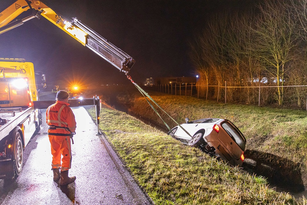 De weg was tijdelijk afgesloten voor het verkeer. Een bergingsbedrijf heeft de auto uit de sloot gehaald en afgevoerd.