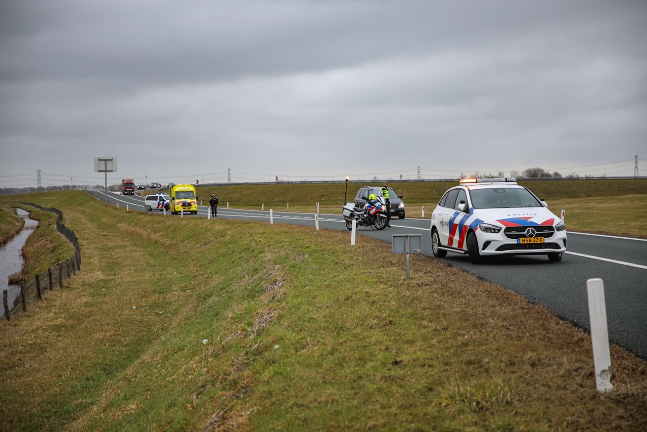Het voertuig reed in de richting van de A7 toen het ter hoogte van hectometerpaal 43,1 misging. Politie en ambulance kwamen ter plaatse om hulp te verlenen. In de auto zaten een man en twee kinderen.