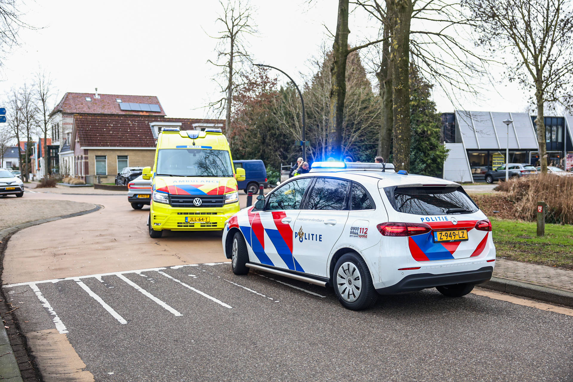 De politie is met meerdere eenheden opzoek naar de auto. De fietser werd in de ambulance gecontroleerd en meegenomen.