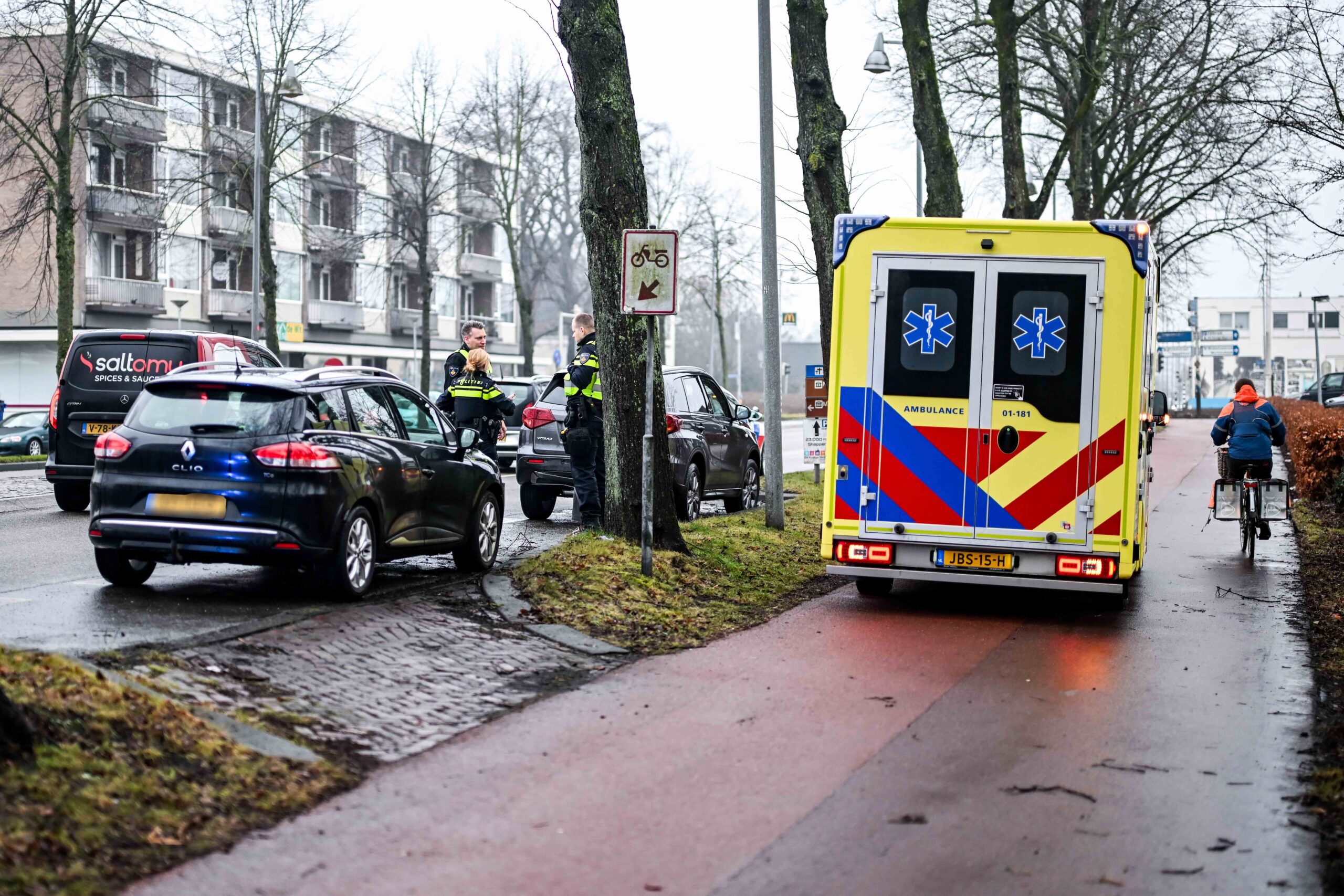 Ambulancepersoneel heeft een van de inzittenden gecontroleerd, maar de verwondingen bleken mee te vallen. De politie onderzoekt de oorzaak van het ongeval.