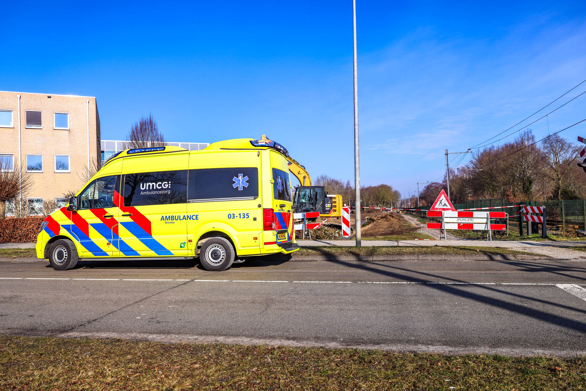 Een fietser kwam daar ten val. Ambulancepersoneel heeft het slachtoffer ter plaatse nagekeken, waarna de persoon per ambulance is overgebracht naar het ziekenhuis.
