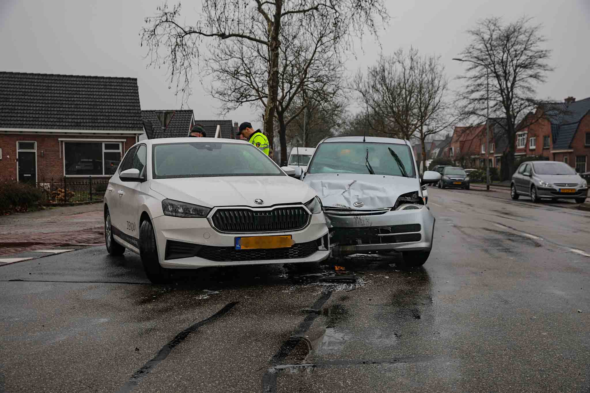 Door een nog onbekende oorzaak kwamen de voertuigen op het kruispunt met elkaar in botsing. Beide auto’s liepen schade op, maar niemand raakte gewond bij het incident.