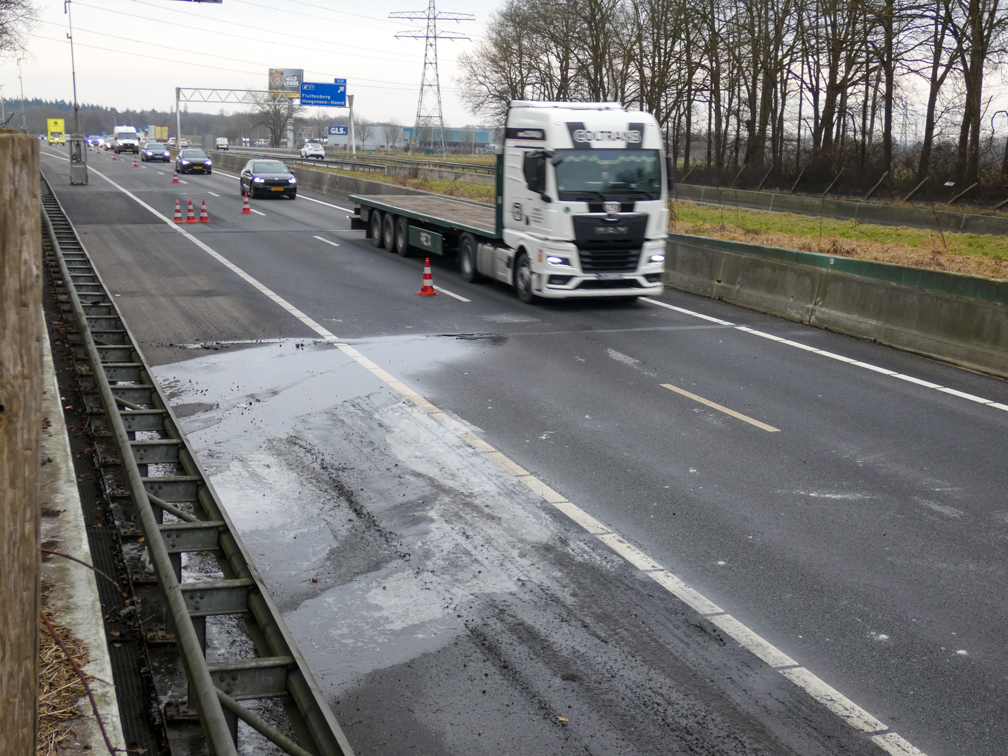 Door lekkage vanuit de constructie van het spoorviaduct kwam water op de snelweg terecht, dat door de lage temperaturen is bevroren. Om de verkeersveiligheid te waarborgen, is de rechterrijstrook tijdelijk buiten gebruik gesteld. Het verkeer wordt over de resterende rijstrook geleid.