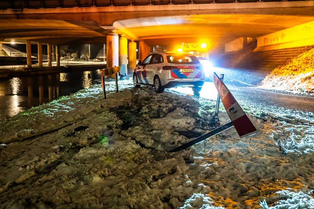 Rond 01.30 uur verloor een automobilist bij het verlaten van een rotonde door sneeuwval en gladheid de controle over het voertuig. De auto gleed rechtdoor en belandde in de Beilervaart.