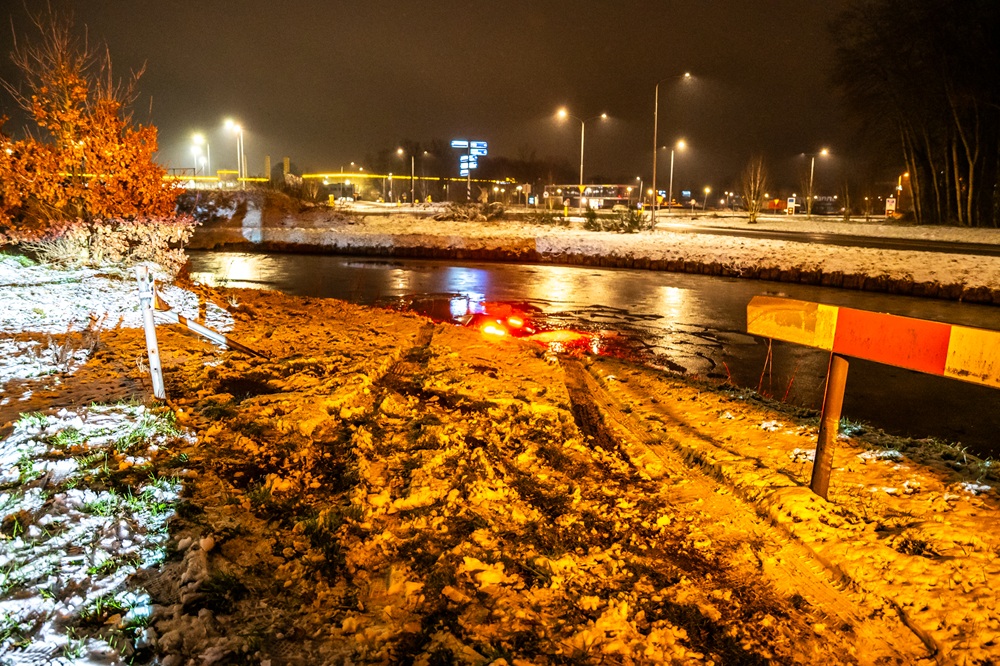 Rond 01.30 uur verloor een automobilist bij het verlaten van een rotonde door sneeuwval en gladheid de controle over het voertuig. De auto gleed rechtdoor en belandde in de Beilervaart.