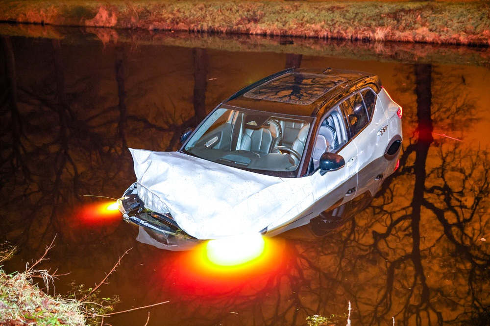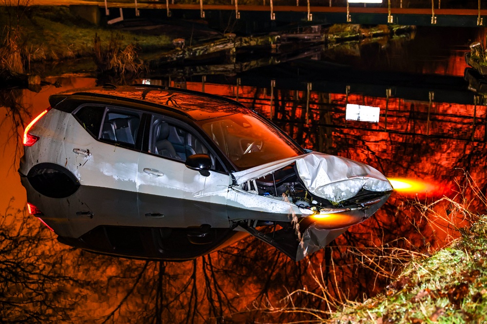 De bestuurder is ter plaatse door de politie aangehouden op verdenking van rijden onder invloed en voor overtreding van de identificatieplicht. Het voertuig is uit het kanaal geborgen.