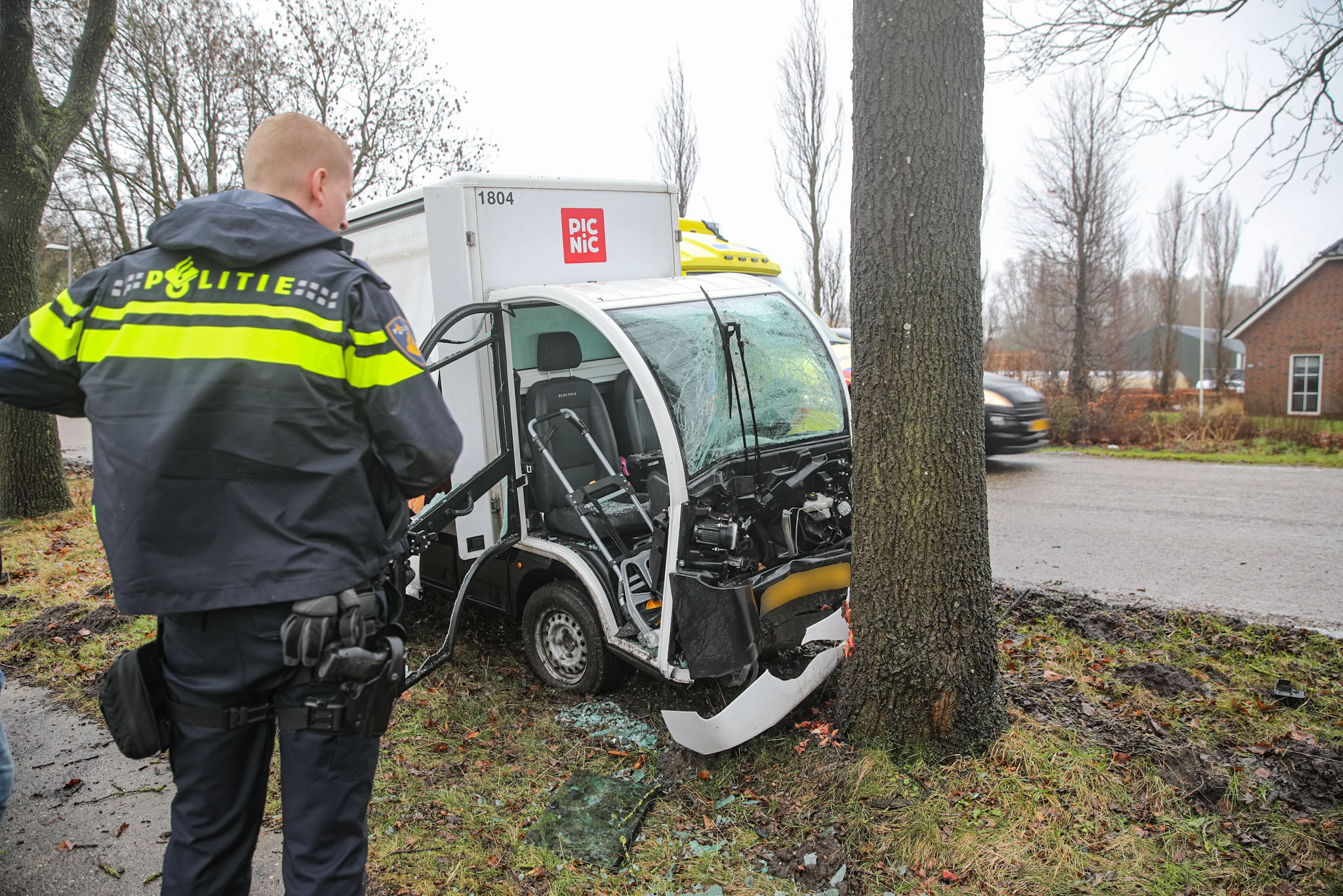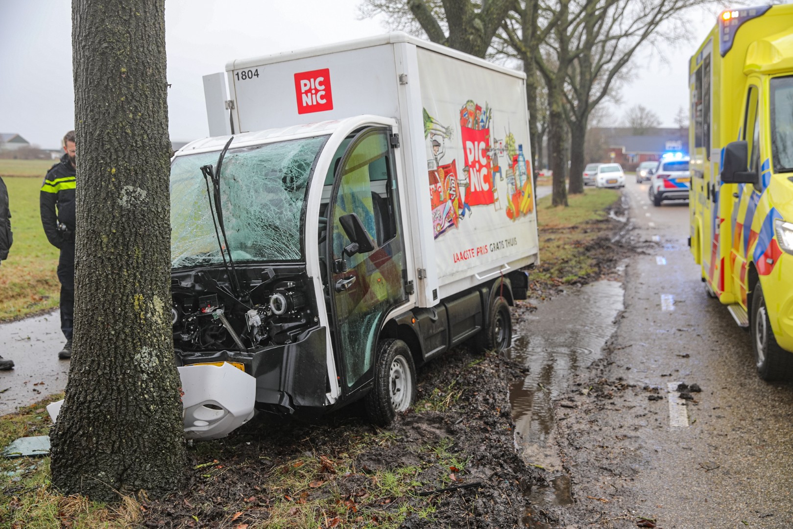 Geplaatst op 22 februari 2026, om 15:19 uurMEEDEN – Zondagmiddag is rond 13:15 uur een eenzijdig ongeval gebeurd aan de Herenweg in Meeden. Een bezorgauto van Picnic raakte daarbij van de weg en botste tegen een boom.