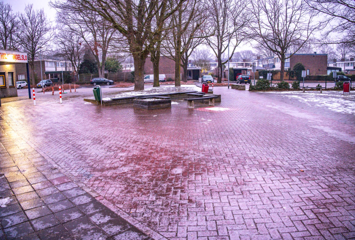 In Emmen is het extreem glad door ijzel. Op videobeelden is te zien hoe mensen moeite hebben om overeind te blijven. Vanwege de gevaarlijke situatie is ook een NL-Alert verstuurd.