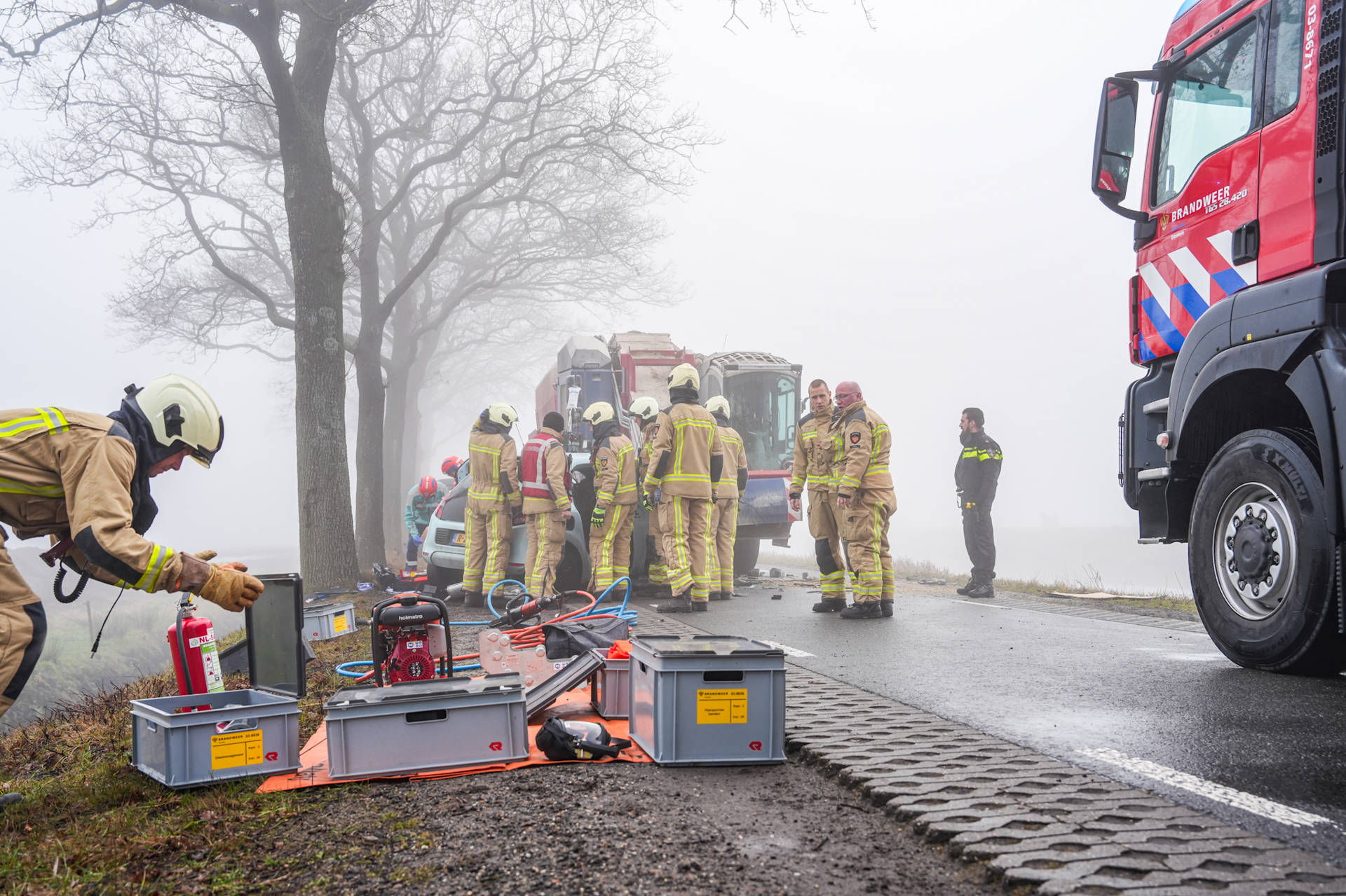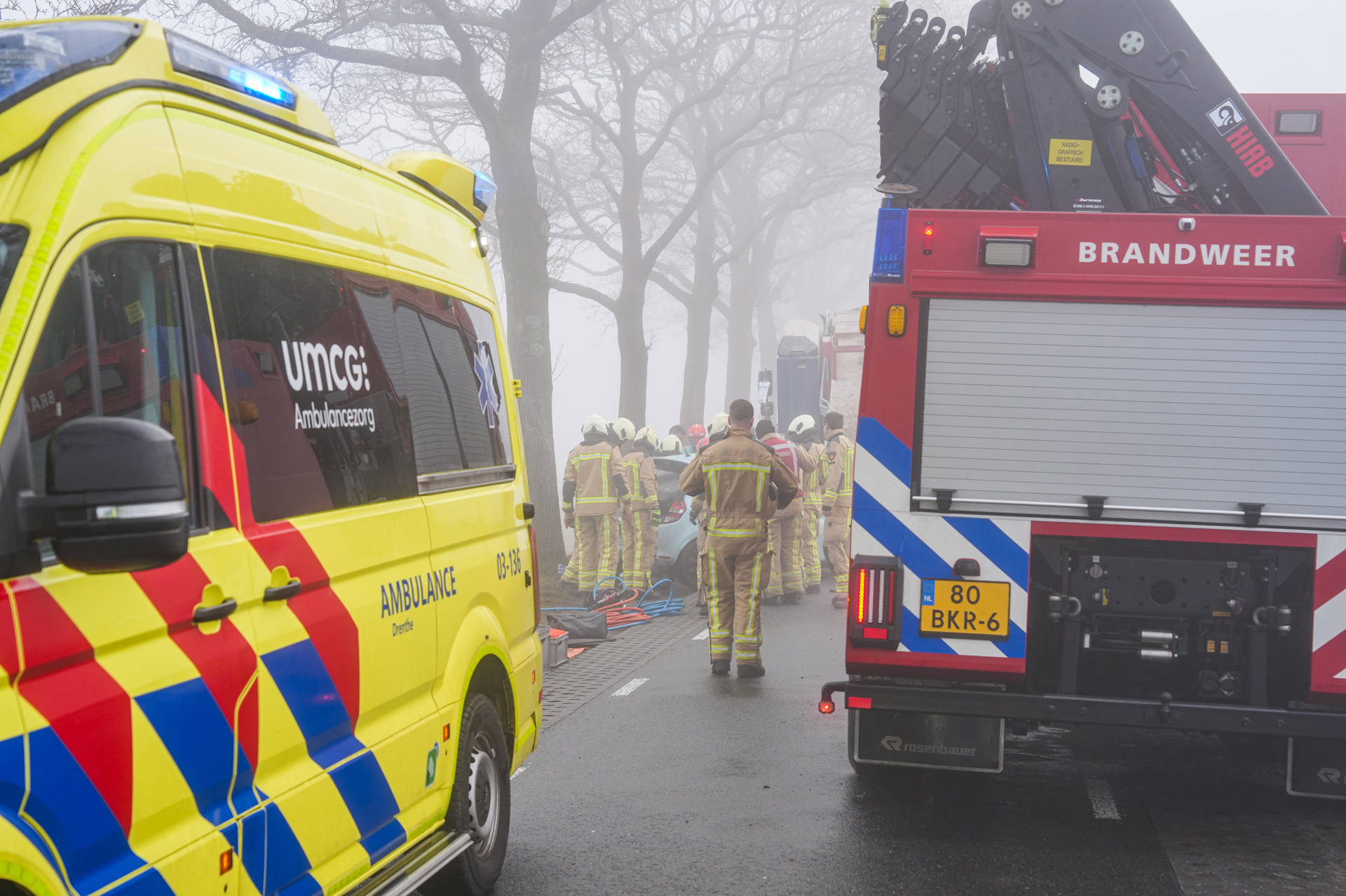 Het KNMI heeft voor de regio Zuidoost-Drenthe code geel afgegeven vanwege dichte mist. Het is nog onduidelijk of het weer een rol heeft gespeeld bij het ongeval. De politie doet onderzoek naar de toedracht.