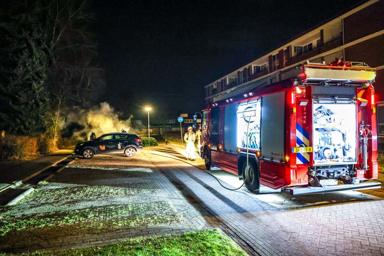 Bij aankomst van de brandweer stond de auto al volledig in brand. Na ongeveer twintig minuten was het vuur onder controle en kon de brand worden geblust.