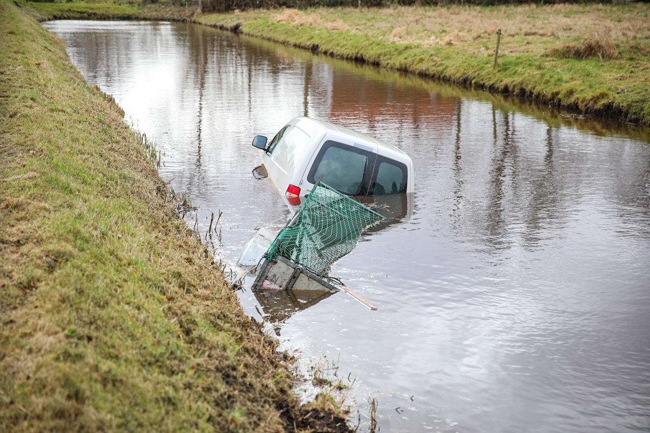 De hulpdiensten hebben het voorval afgehandeld. Een bergingsbedrijf zal het voertuig en de aanhanger uit het water halen.