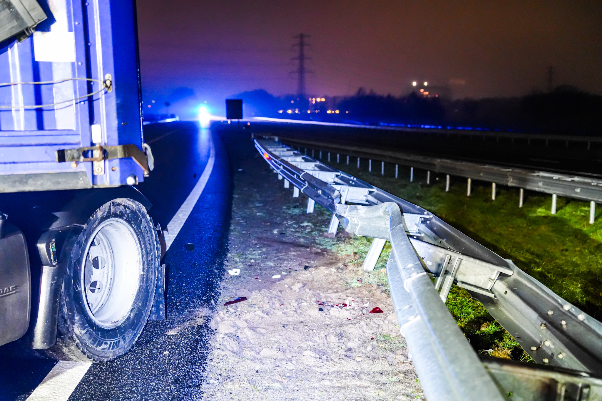Vrachtwagen ramt vangrail na glijpartij op snelweg