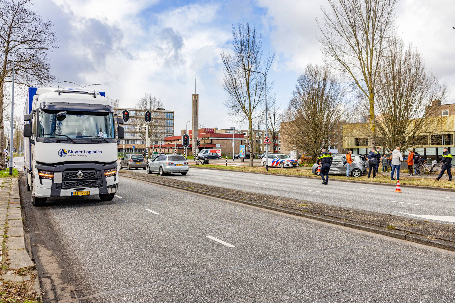 Ter plaatse bleek een personenauto in botsing te zijn gekomen met een vrachtwagen. Door de klap liep de auto flinke schade op. De vrachtwagen kwam er voor zover bekend zonder noemenswaardige schade vanaf.