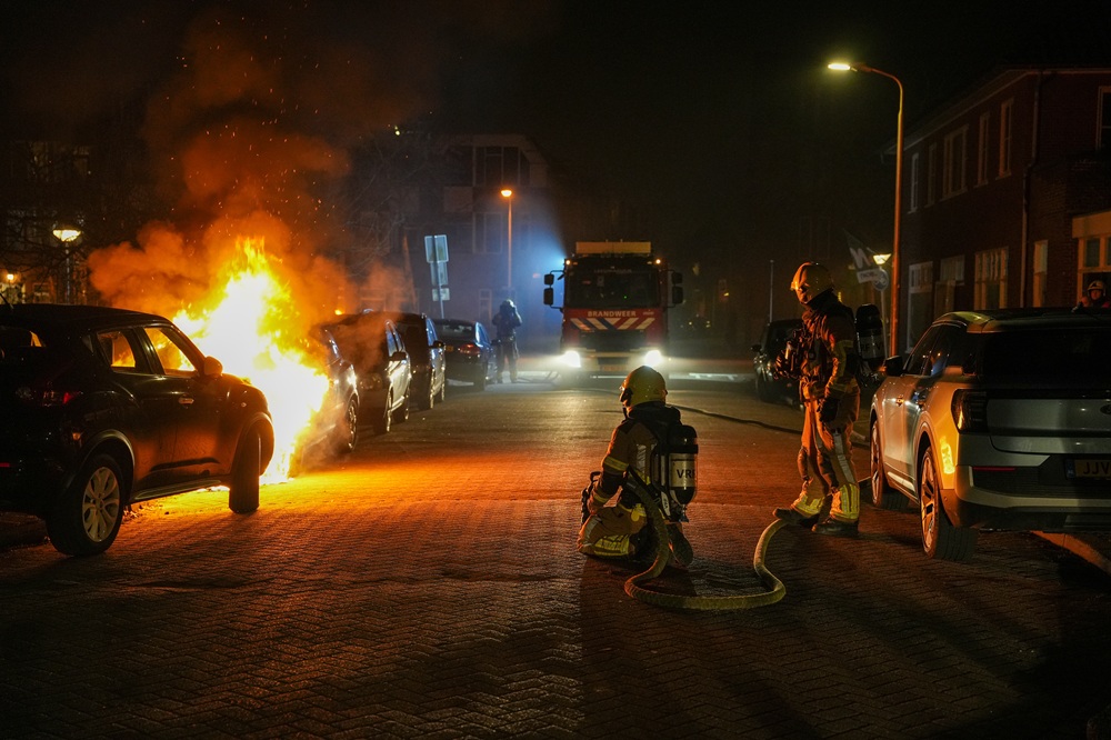 Bij aankomst van de brandweer sloegen de vlammen al uit het voertuig. Het vuur werd geblust, maar de auto raakte zwaar beschadigd.