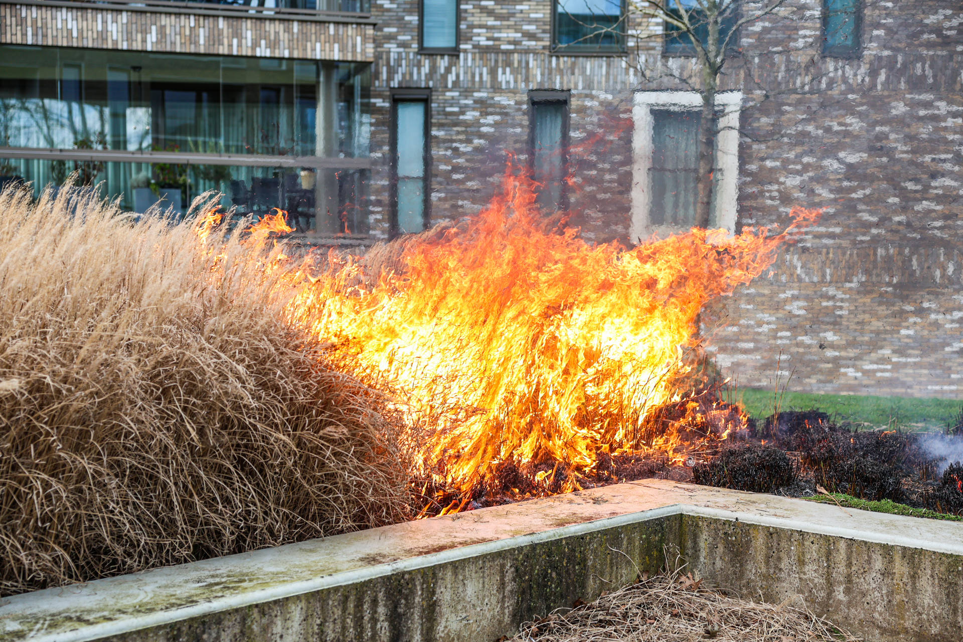 Brandweer blust felle buitenbrand