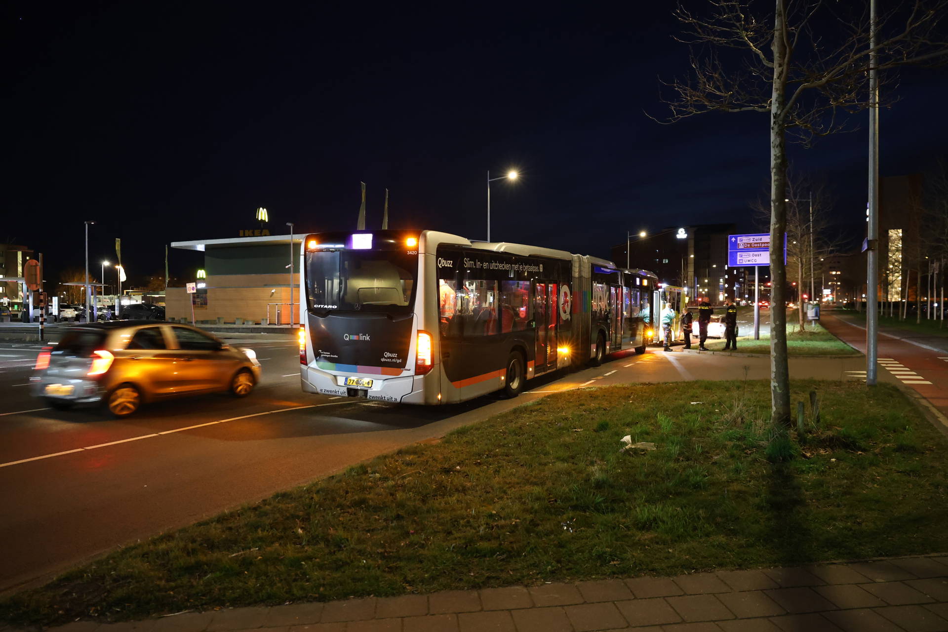 Het incident gebeurde rond 19.20 uur ter hoogte van de McDonald’s. De buschauffeur verklaarde tegenover de politie dat hij hard moest remmen voor een automobilist. Door die noodstop viel de passagier van zijn stoel.