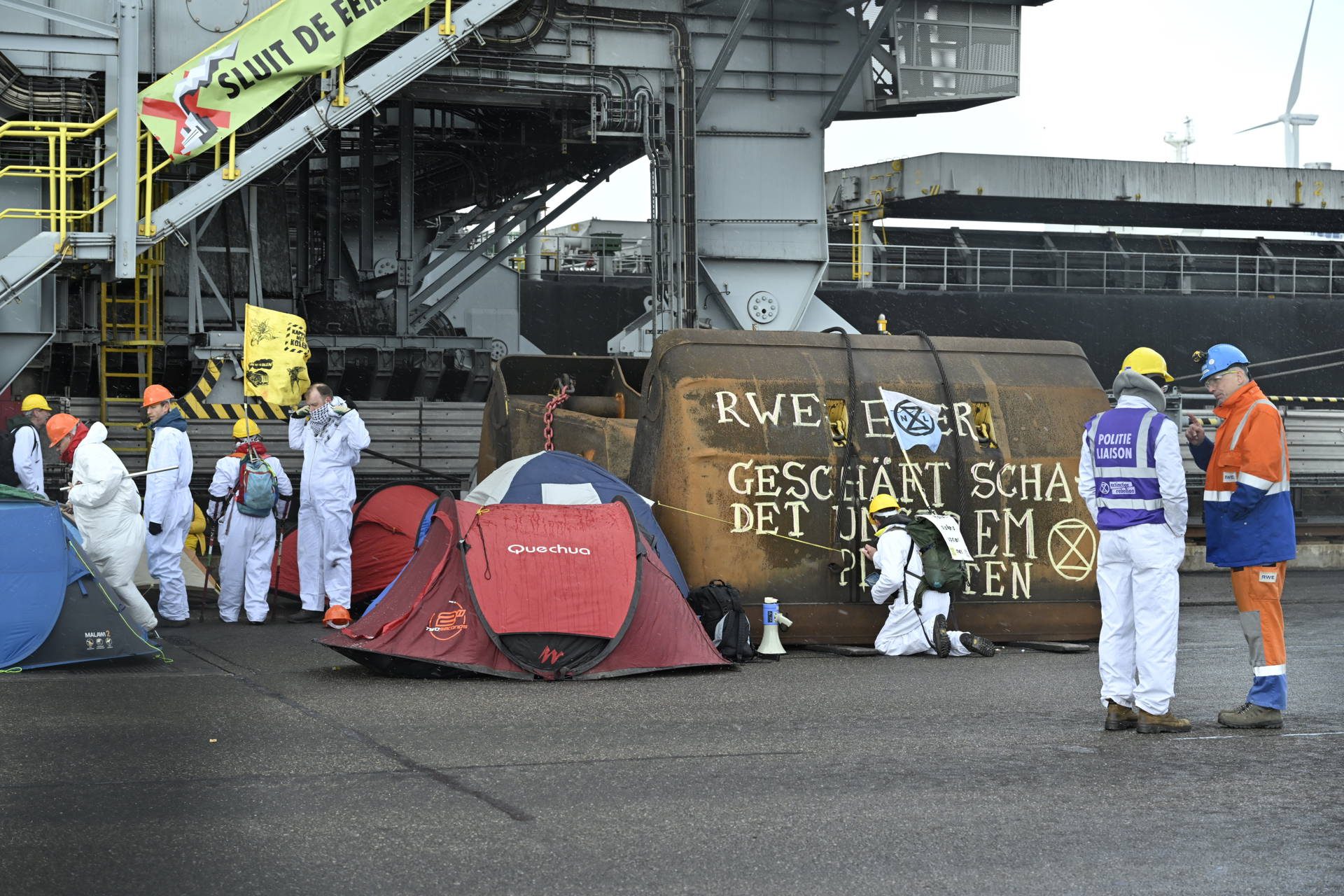 De groep voerde actie bij de energiecentrale, waarbij een deel van de demonstranten erin slaagde het terrein op te komen door over de omheining te klimmen. Wat zij daar precies doen, is nog niet volledig duidelijk.