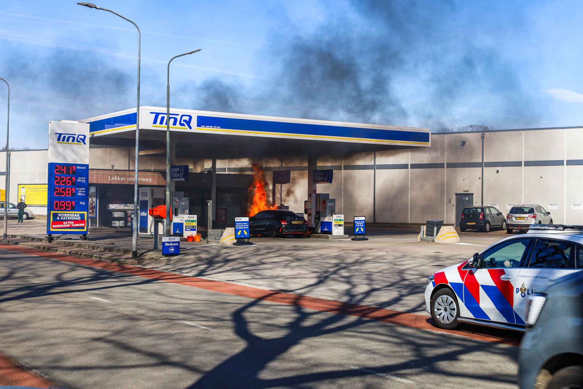 Ter plaatse bleek een auto volledig in lichterlaaie te staan bij een pomp van het tankstation. Met behulp van een noodknop werd de brandstoftoevoer direct afgesloten. De weg is afgesloten vanwege de inzet van de hulpdiensten. De brandweer is bezig met het blussen van het voertuig.