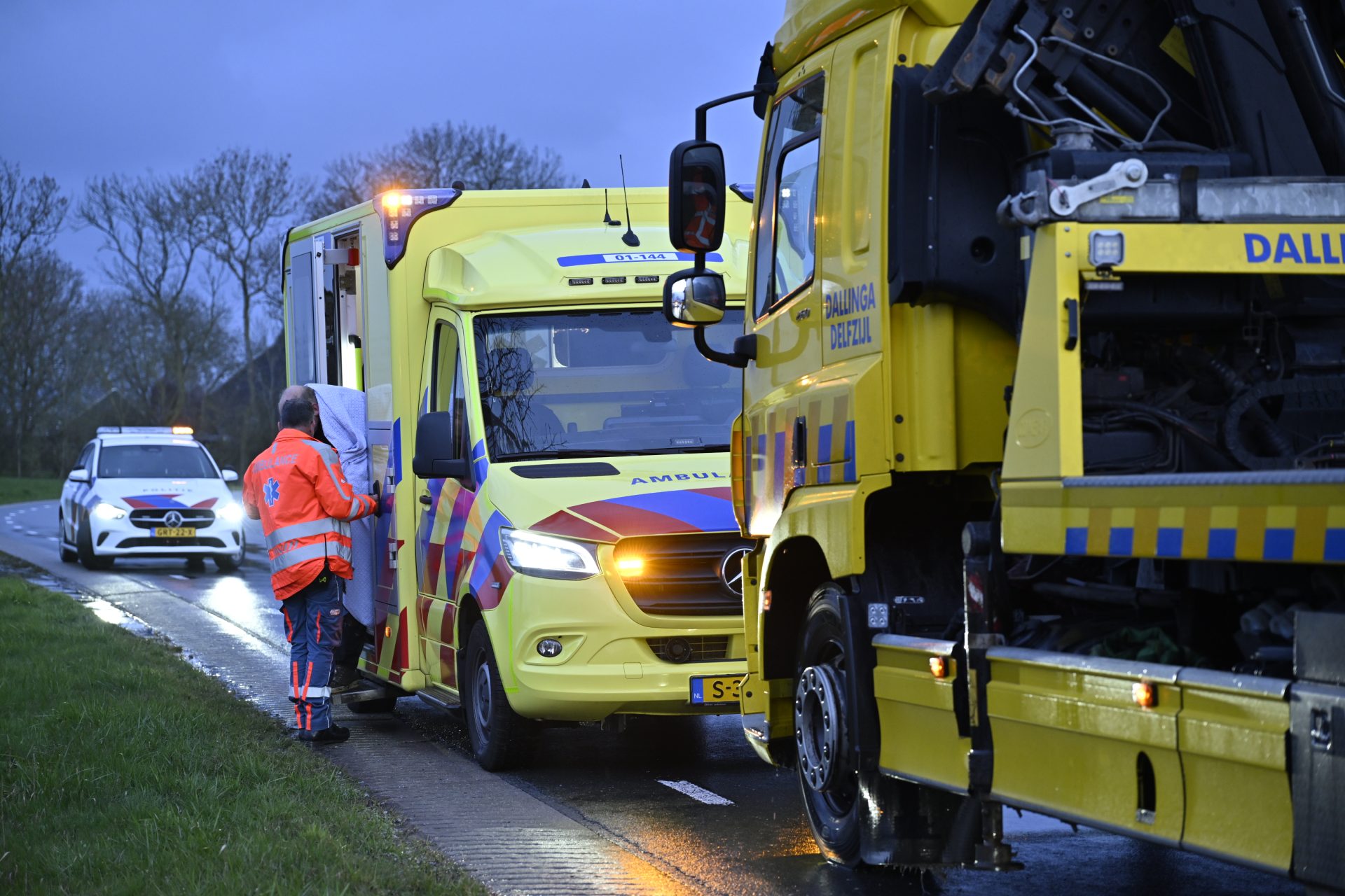 Ambulancepersoneel heeft de man nagekeken, maar hij bleek ongedeerd. De weg werd tijdelijk afgesloten voor de berging van het voertuig en kon daarna weer worden vrijgegeven.