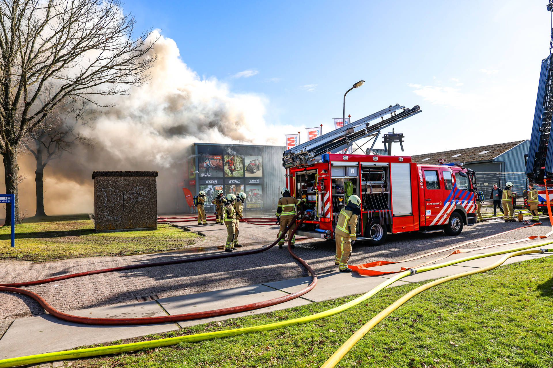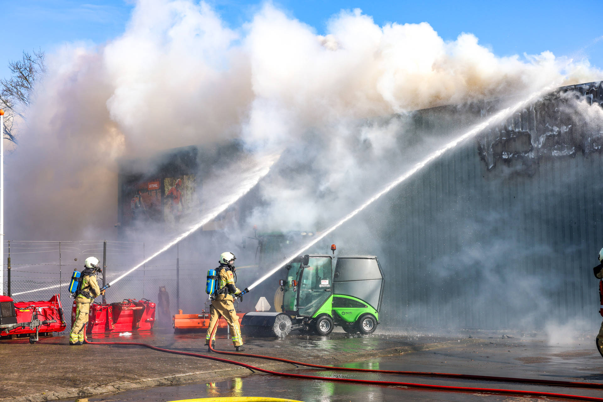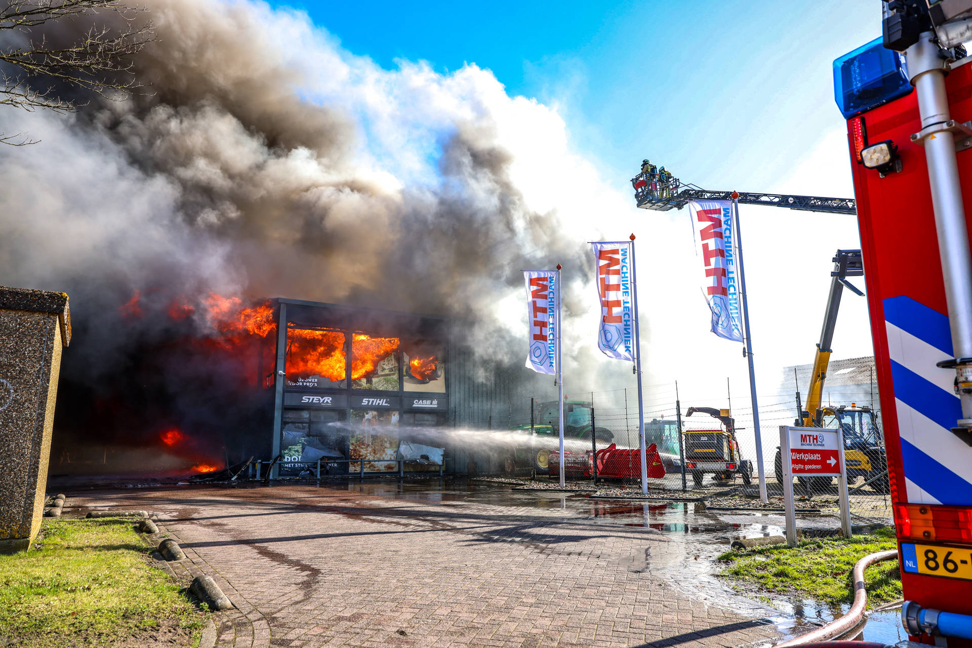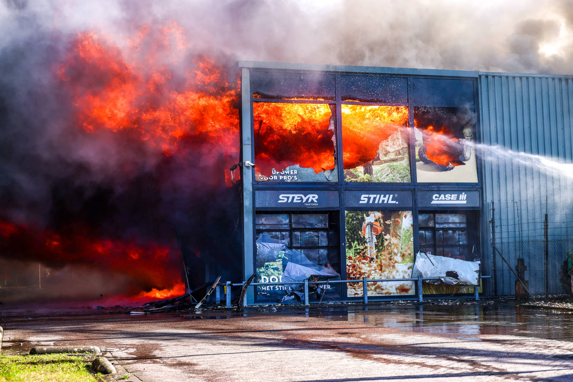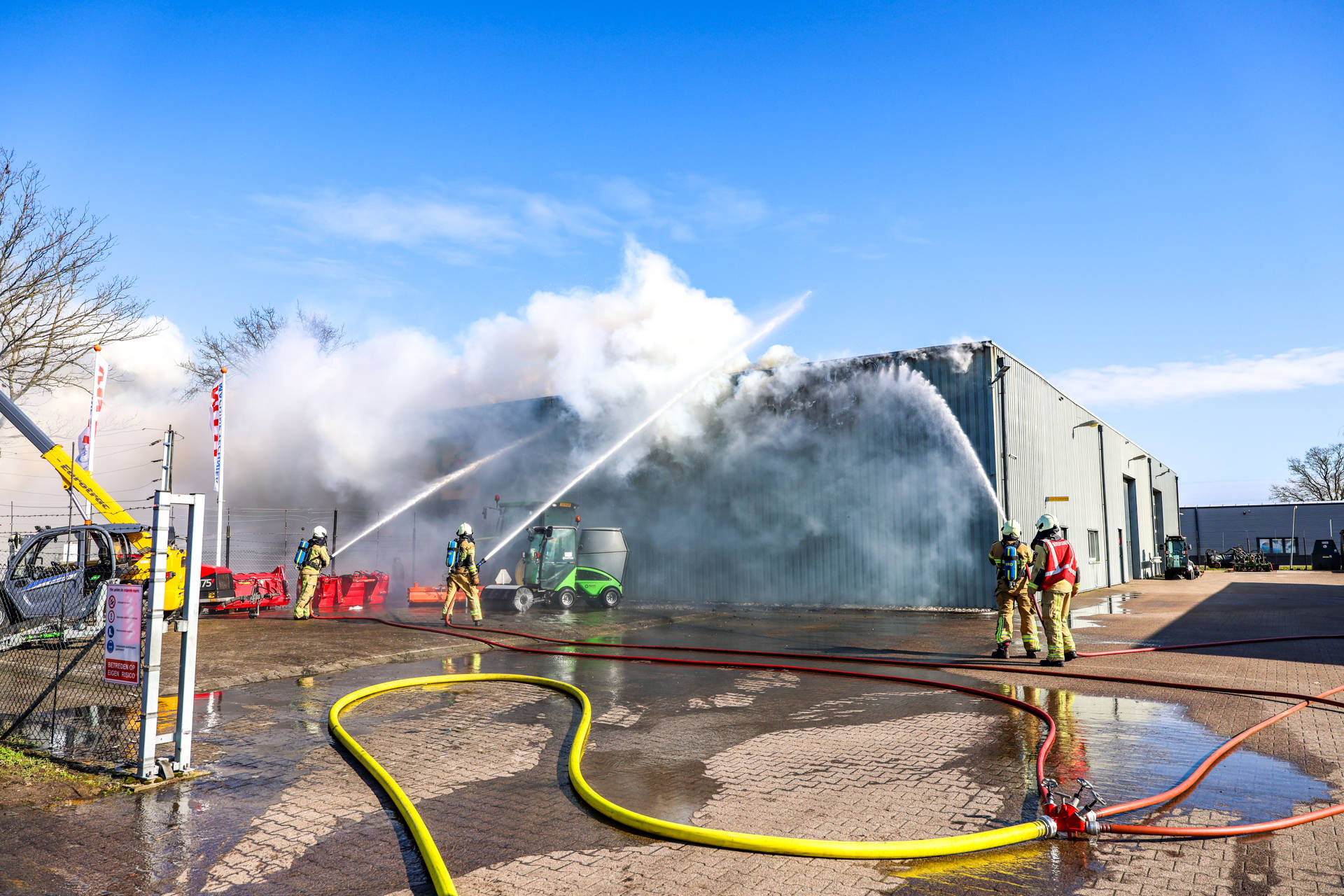 De brand werd ontdekt nadat op camerabeelden een beginnende brand te zien was. Op dat moment was er niemand in het pand aanwezig. In het gebouw stonden meerdere landbouwvoertuigen opgeslagen, wat volgens de Veiligheidsregio zorgde voor een grote brandbelasting. Er kwam veel zwarte rook vrij, die tot in de wijde omgeving zichtbaar was. Kort na het uitbreken van de brand werd een NL-Alert verstuurd met het advies ramen en deuren te sluiten. Rond 14.00 uur werd deze waarschuwing weer ingetrokken.